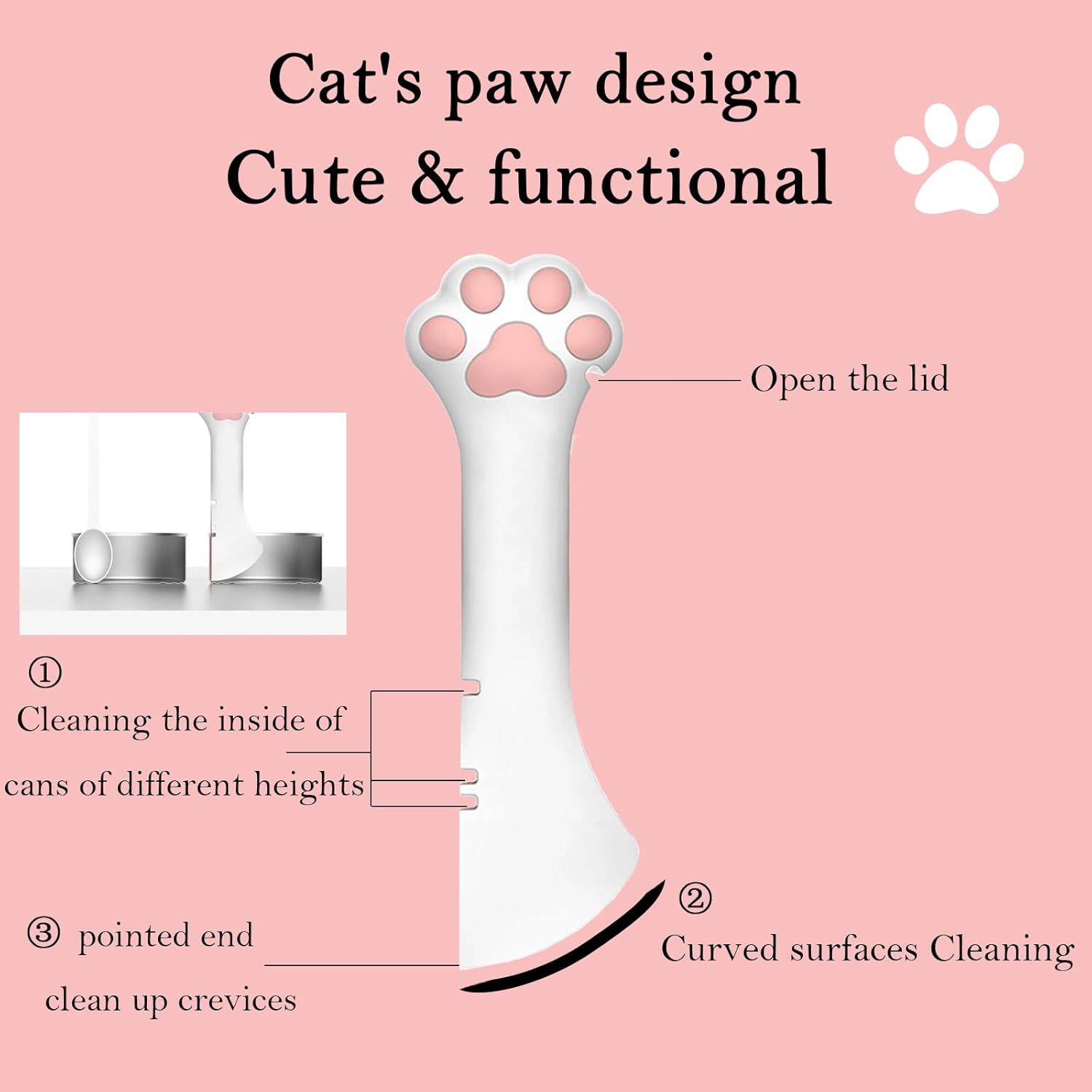 - 【Multi-functional Pet Can Opener】Both spoon and can opener. It adopts the lever principle design. which allows you to open the pet can easily; There is a stiff inner bone supporting the whole spatula.