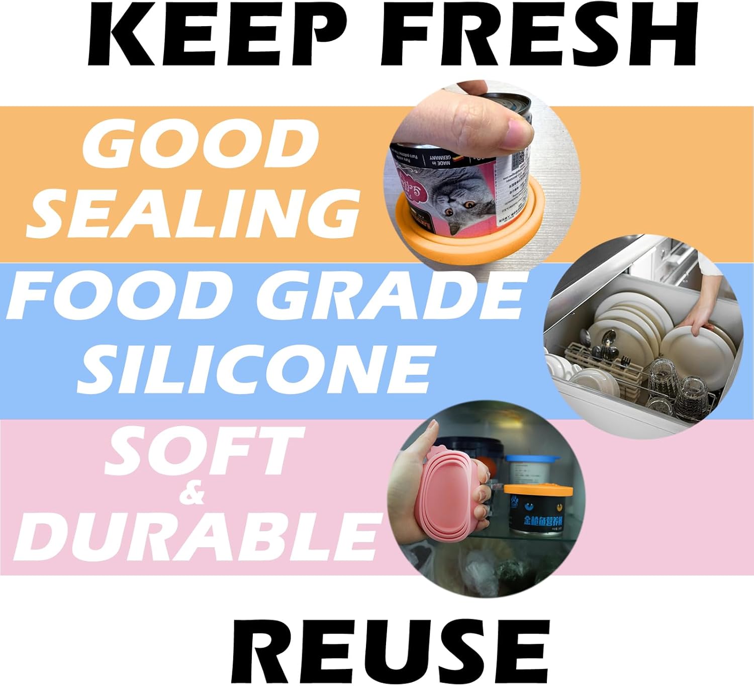 - 【Universal & Airtight & Reusable】The cat/dog can lids for most standard size, such as 3oz, 5.5oz, 12.5oz, 13oz and 13.2oz cans. It keeps food fresh, this is a more economic and environmentally-friendly option than aluminum foil or plastic wrap.