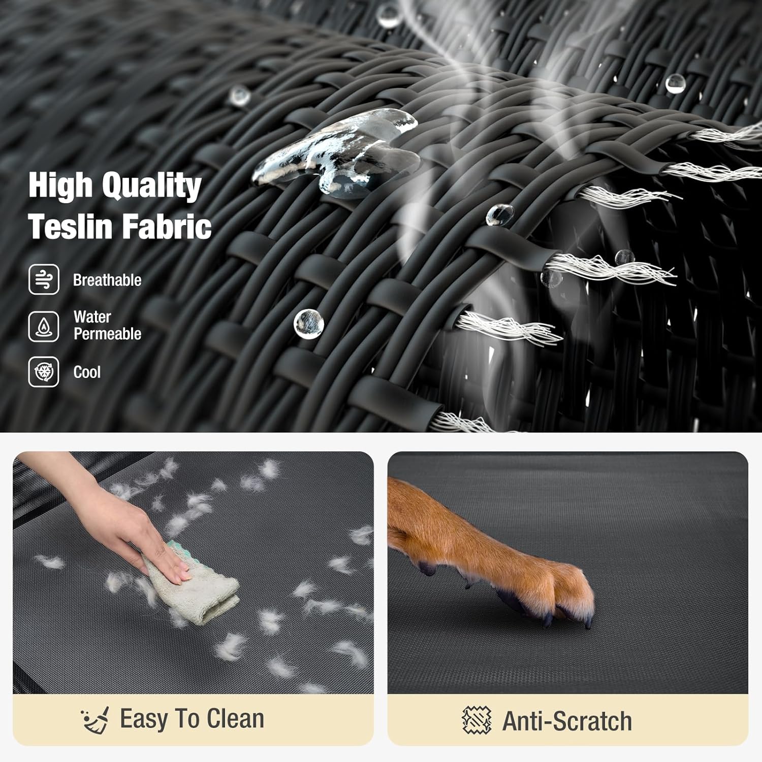 - All-Season Comfort: The Teslin Mesh mat not only allows the air to flow, but also allows the water to penetrate, keeping your pet cool in summer; The elevated dog bed lifts your dog 8.2 inches off the hard ground, mud or wet grass, alleviating joints pressure and keeping health