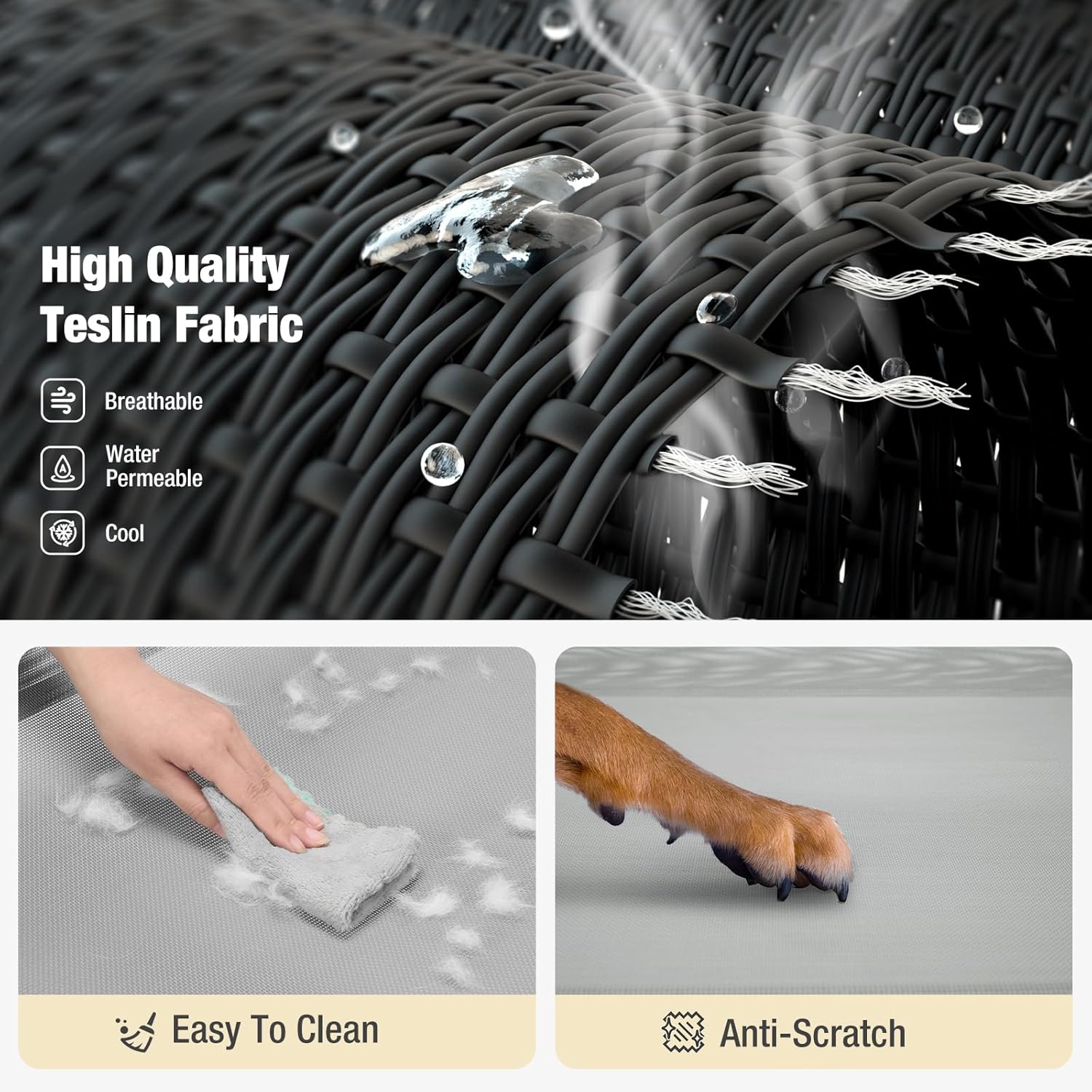 - All-Season Comfort: The Teslin Mesh mat not only allows the air to flow, but also allows the water to penetrate, keeping your pet cool in summer; The elevated dog bed lifts your dog 8.2 inches off the hard ground, mud or wet grass, alleviating joints pressure and keeping health