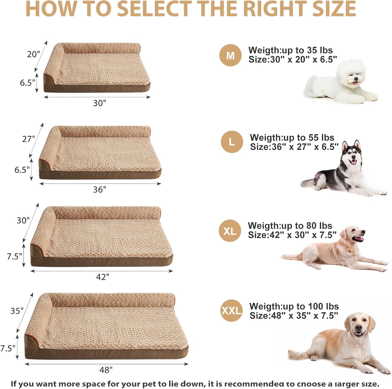 - SOFT SURFACE&WATERPROOF: The surface of the large dog beds is made of soft and cozy high-quality fluff. The pet bed is pleasant to the touch, non-pilling, and gentle on sensitive dogs' skin, noses, and paws. There is a waterproof layer in the dog couch bed mezzanine cover to prevent liquids from dampening the egg foam.