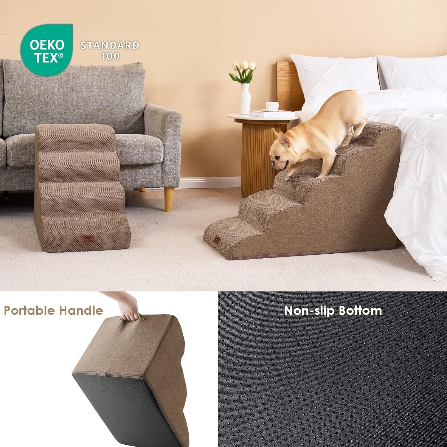 EHEYCIGA Curved Dog Stairs Ramp for High Beds 22.6" H, 5-Step Dog Steps for Small Dogs and Cats, Pet Stairs for High Bed Climbing, Non-Slip Balanced Pet Step Indoor, Camel
