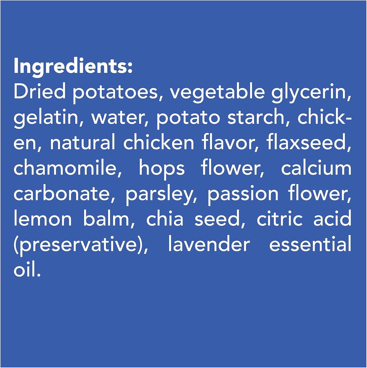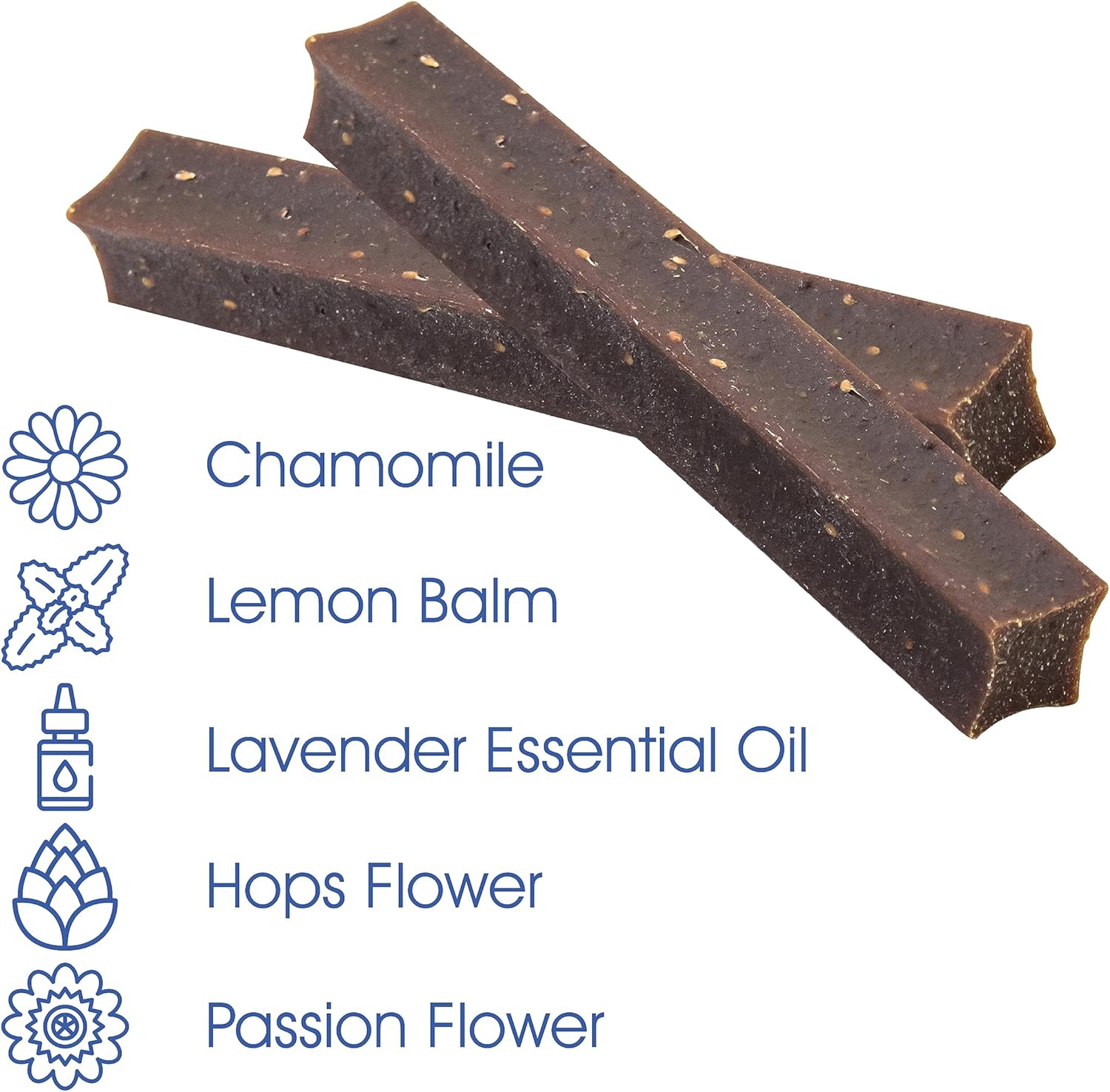 - Calming + Dental Health: Firm yet chewable texture helps reduce plaque and tartar buildup—freshening breath while delivering soothing botanicals. It also does not contain melatonin for dogs to avoid morning droopiness.