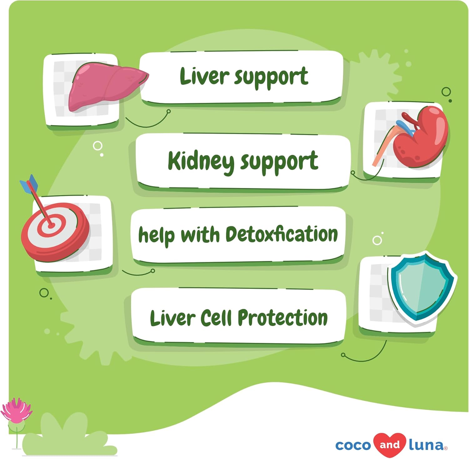 - Organic Milk Thistle for Dogs - Coco and Luna Liver and Kidney Support contains Milk Thistle which is a safe and powerful ingredient that provides liver support for dogs by eliminating toxins and working as a natural dog detox.
