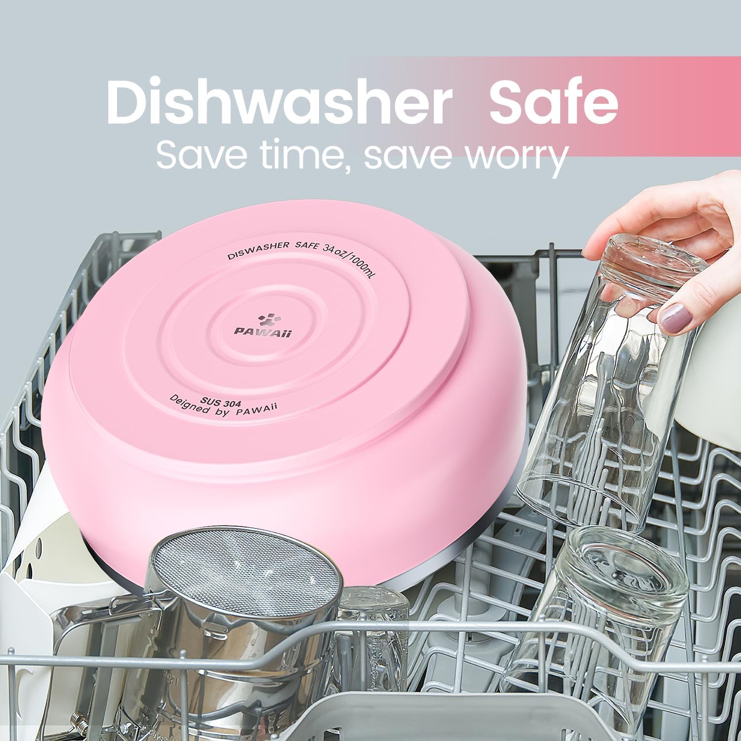 - 𝐀 𝐛𝐫𝐞𝐞𝐳𝐞 𝐭𝐨 𝐜𝐥𝐞𝐚𝐧: You can wash this dog food bowl in a dishwasher or manually. Pawaii stainless steel dog bowl repels oil, does not hide dirt, and can be cleaned by simple flushing.