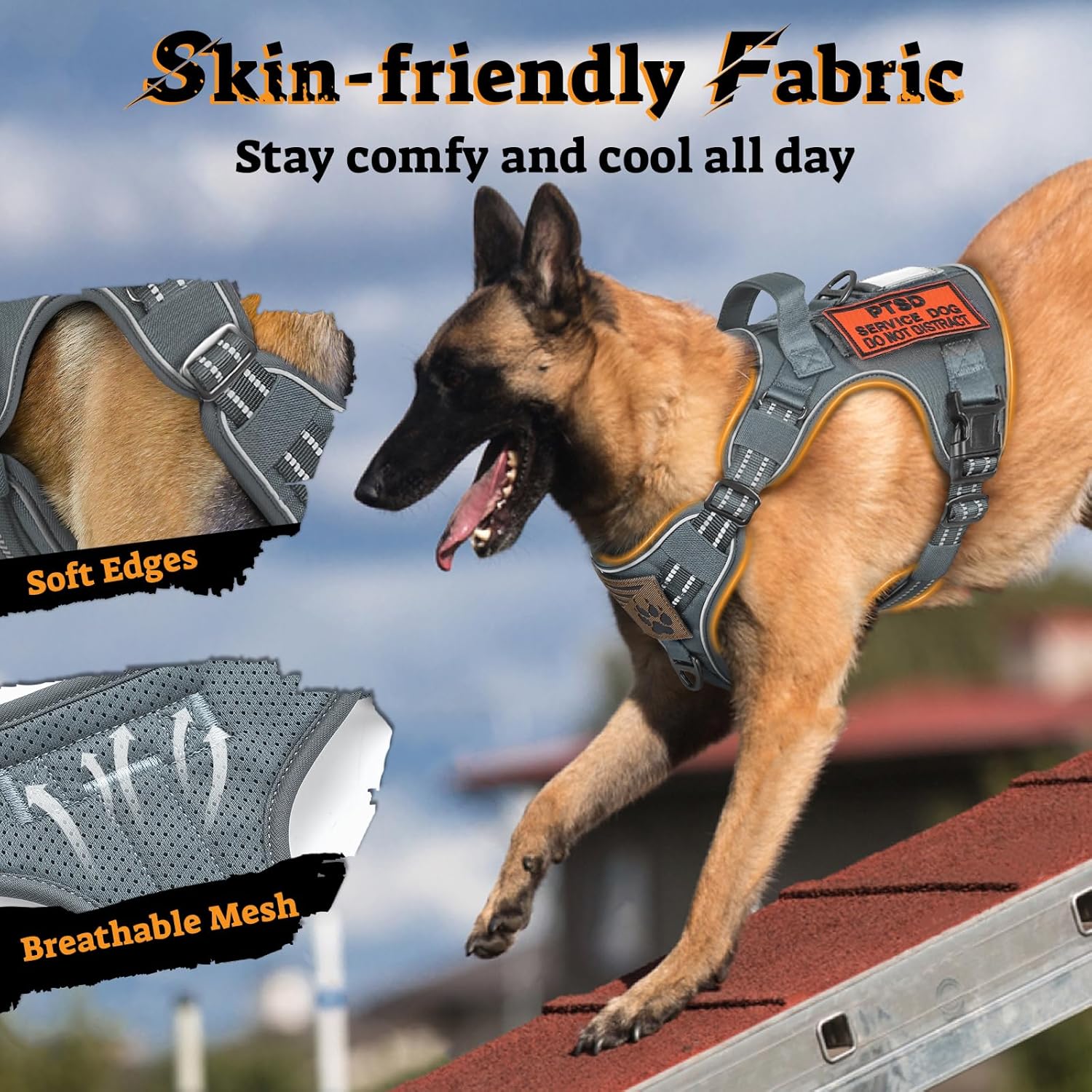 - No-Pull and Control: The harness has 21 leash attachment clips, including a metal front clip for no-pull running and a daily back clip for casual jogging. The large padded handle offers comfortable real-time control in an emergency
