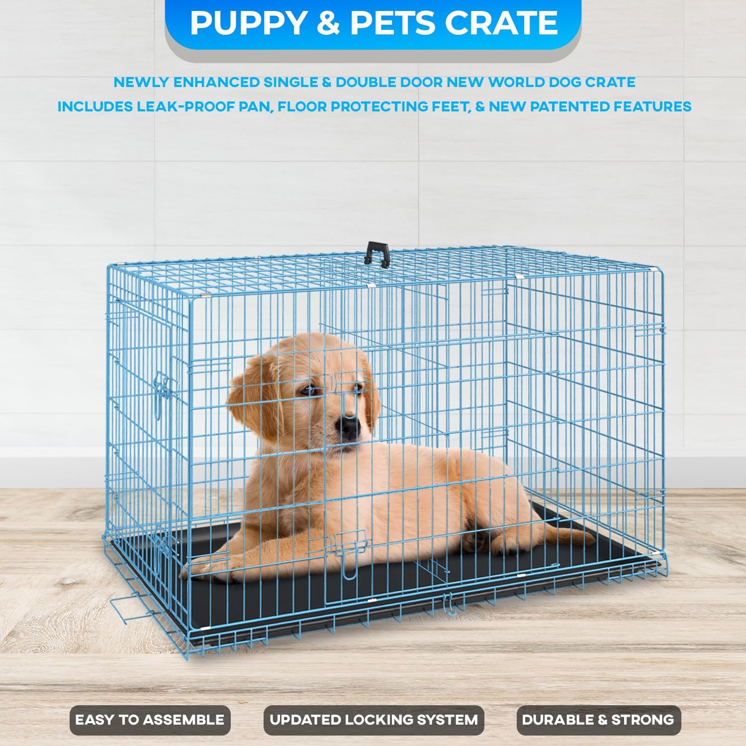 - 🐕【Easy to Clean】: the dog cage includes a durable leak-proof ABS Composite tray that will not stain, warp, corrode or retain pet odors. The pet cage bottom pan features an integrated Lip around the perimeter, to contain any mess from spilling outside the dog kennel. Dog cage with tray pet crate metal dog cage.