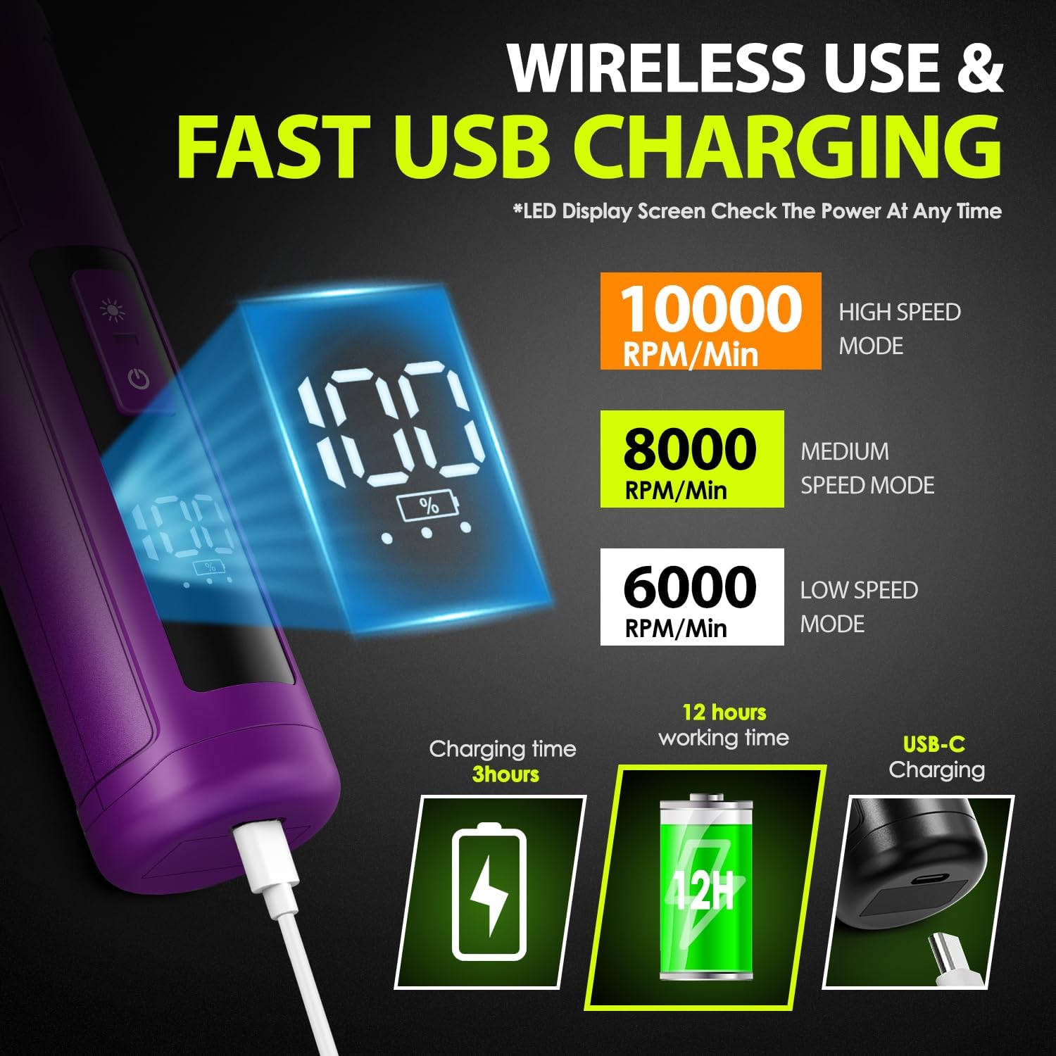 Dog Nail Grinder Upgraded - Professional 3-Speed Super Quiet and Low Vibration Electric Pet Nail Grinder with 4 LED Lights - Painless Paws Grooming & Smoothing for Small to Large Dogs (Purple)