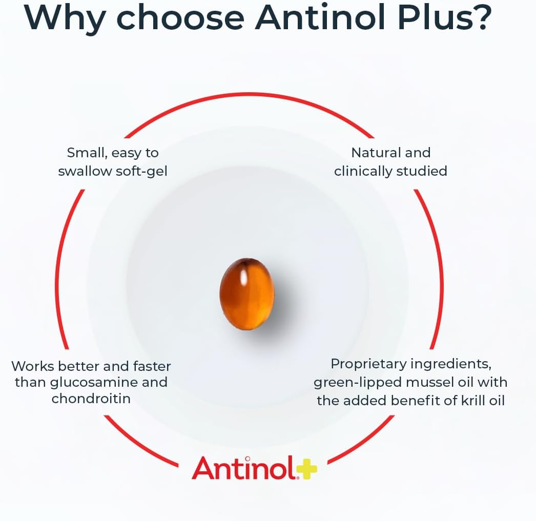 - CLINICALLY PROVEN: Antinol Plus is clinically proven to enhance mobility, support joint health, and promote a healthy inflammatory response by 2 double-blind controlled clinical trials. The green-lipped mussel oil in Antinol Plus is backed by 40 years of research and over 40-peer reviewed studies.