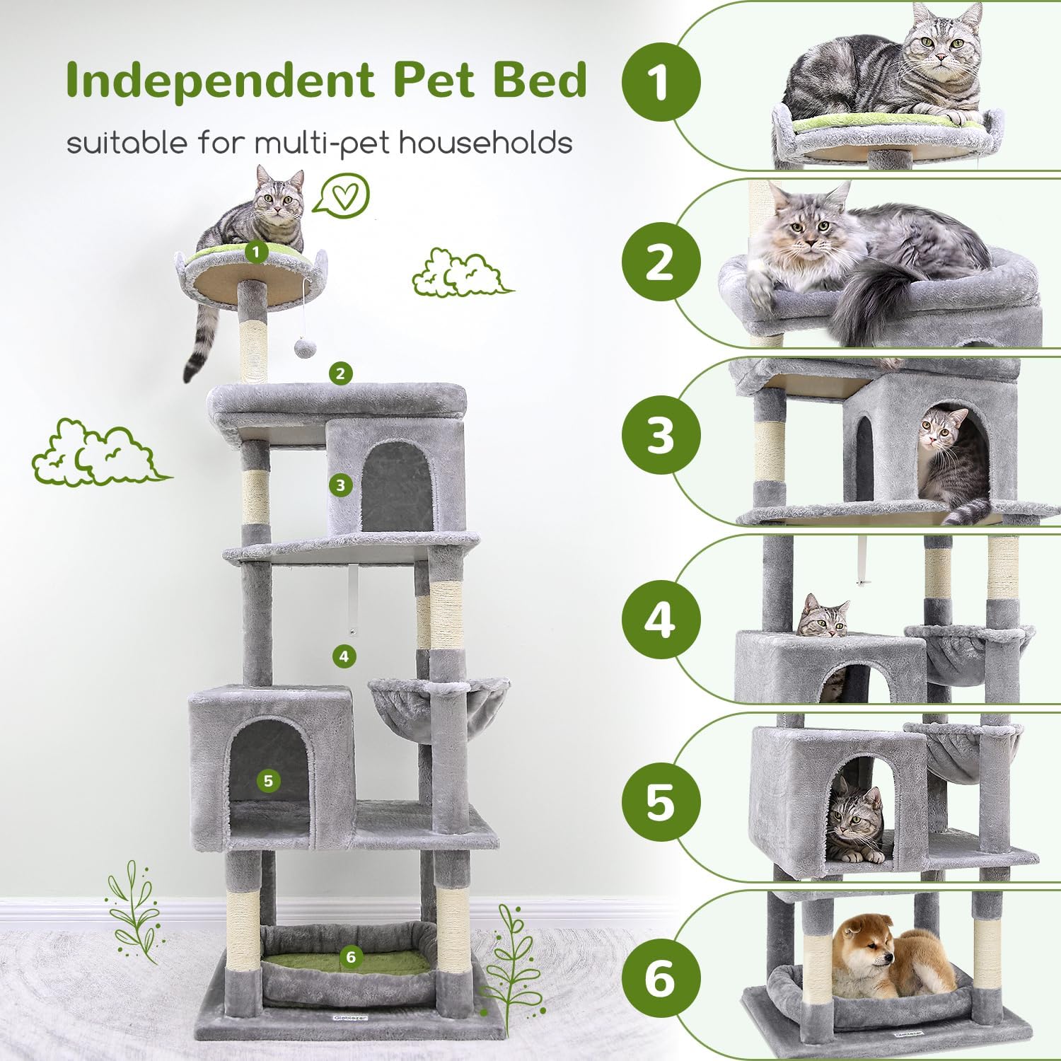 - ENHANCED STURDY STABILITY - The thickened and enlarged base board ensures enhanced sturdy. The unique design ensures the center of gravity is precisely centered, making it difficult for this tall cat tree tower to tip over even during movements by large cats