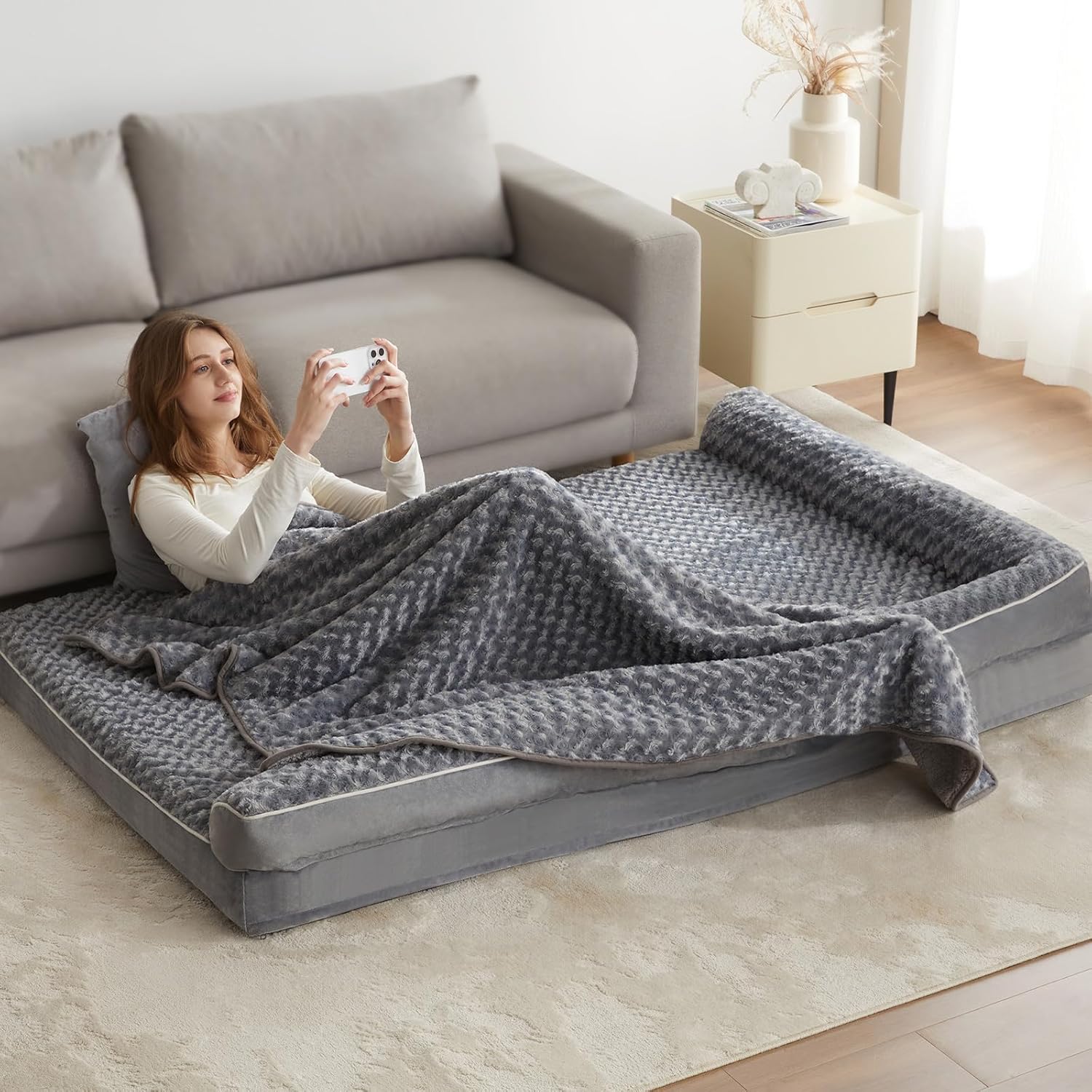 - SOFT SURFACE&WATERPROOF: The surface of the large dog bed is made of soft and cozy high-quality fluff. The dog bed is pleasant to the touch, non-pilling, and gentle on sensitive dogs' skin, noses, and paws. There is a waterproof layer in the dog couch bed mezzanine cover to prevent liquids from dampening the egg foam.