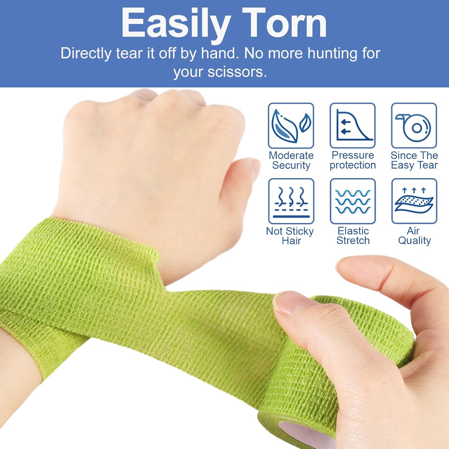 - 【Breathable & Water-Resistant】 Safe for sensitive skin and pet bandages, this cohesive bandage wrap resists water while reducing swelling. Hand-tearable, no scissors required
