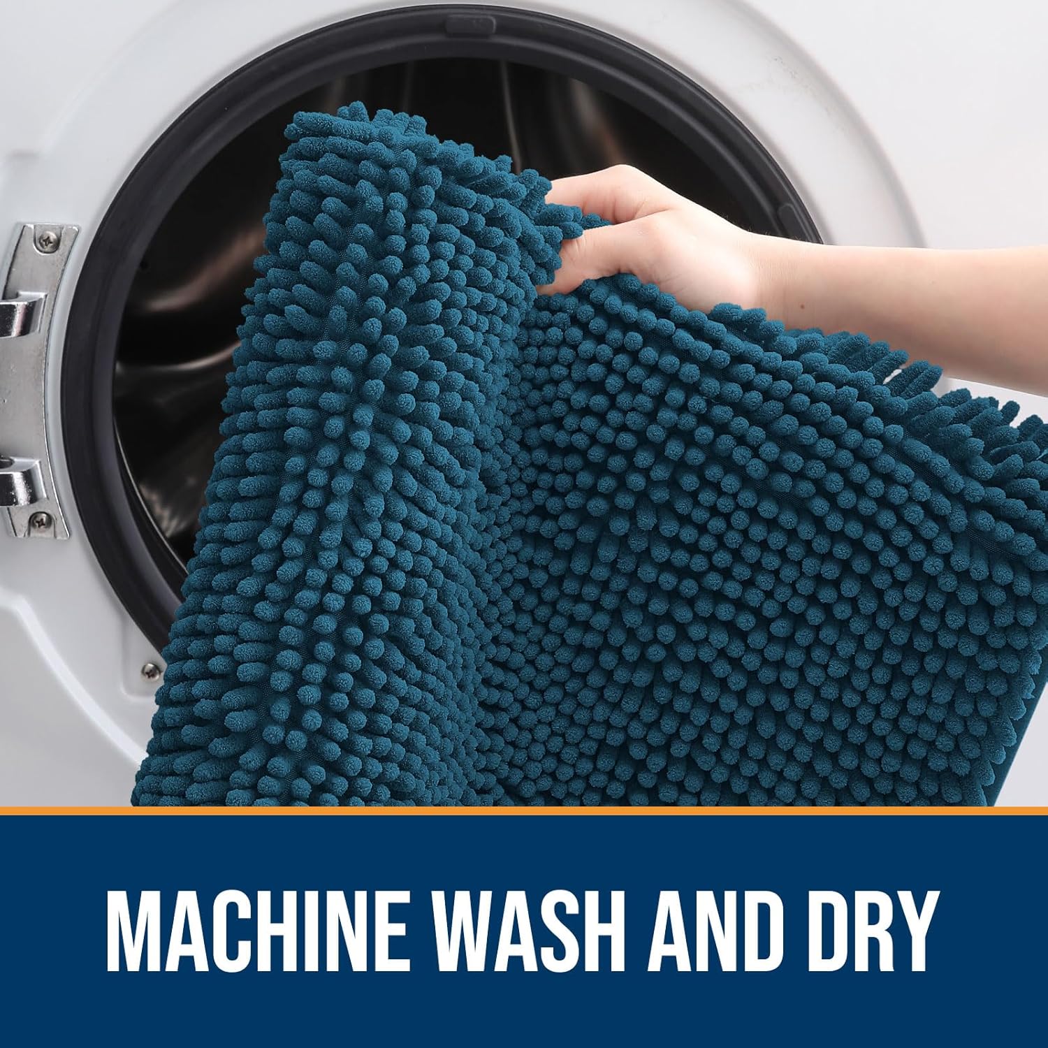 OLANLY Dog Door Mat for Muddy Paws 59x35, Absorbs Moisture and Dirt, Absorbent Non-Slip Washable Doormat, Quick Dry Chenille Mud Mat, Entry Indoor Entryway Carpet for Inside Floor, Atlantic Blue