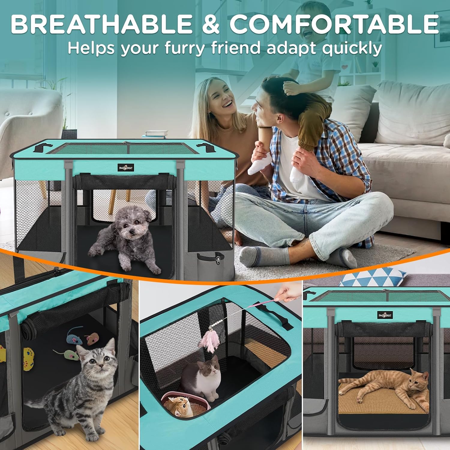 - Safety & Durability: Kitten playpen is made of high-quality 600D Oxford cloth, which is wear-resistant, soft to the touch, and odorless. We have reinforced the joints and corners of the dog playpen to ensure the safety of your pet. (The portable pet playpen is lightweight, and you can place heavy objects inside the pet playpen to increase stability, but it is not suitable for use with aggressive pets)