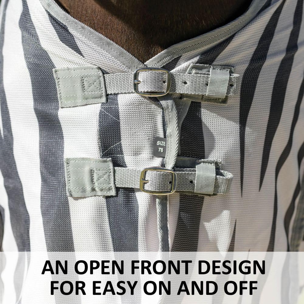 - Color Zebra | Size 82 -DETERRENT ZEBRA PATTERN - The unique zebra print not only adds a stylish flair but also serves a functional purpose by naturally deterring flies from landing on your horse, proven by studies.