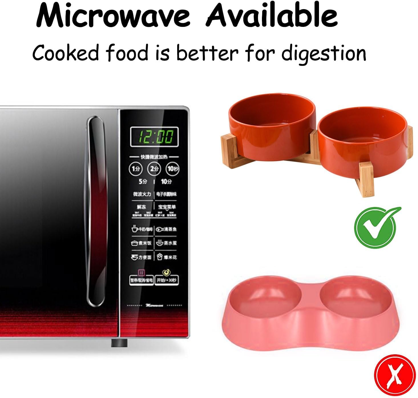 - EASY TO CLEAN CERAMIC - This easy clean dog bowl set is dishwasher proof, as well as easy to handwash and wipe down. With thick walls, these ceramic bowls for pets are sturdy, leak-free and weighty yet not too heavy. Double Bowl Design:One dog bowl for food and one for water, Each ceramic cat bowl has a Unique wooden stand, raising the dishes closer to your pet for more comfortable eating