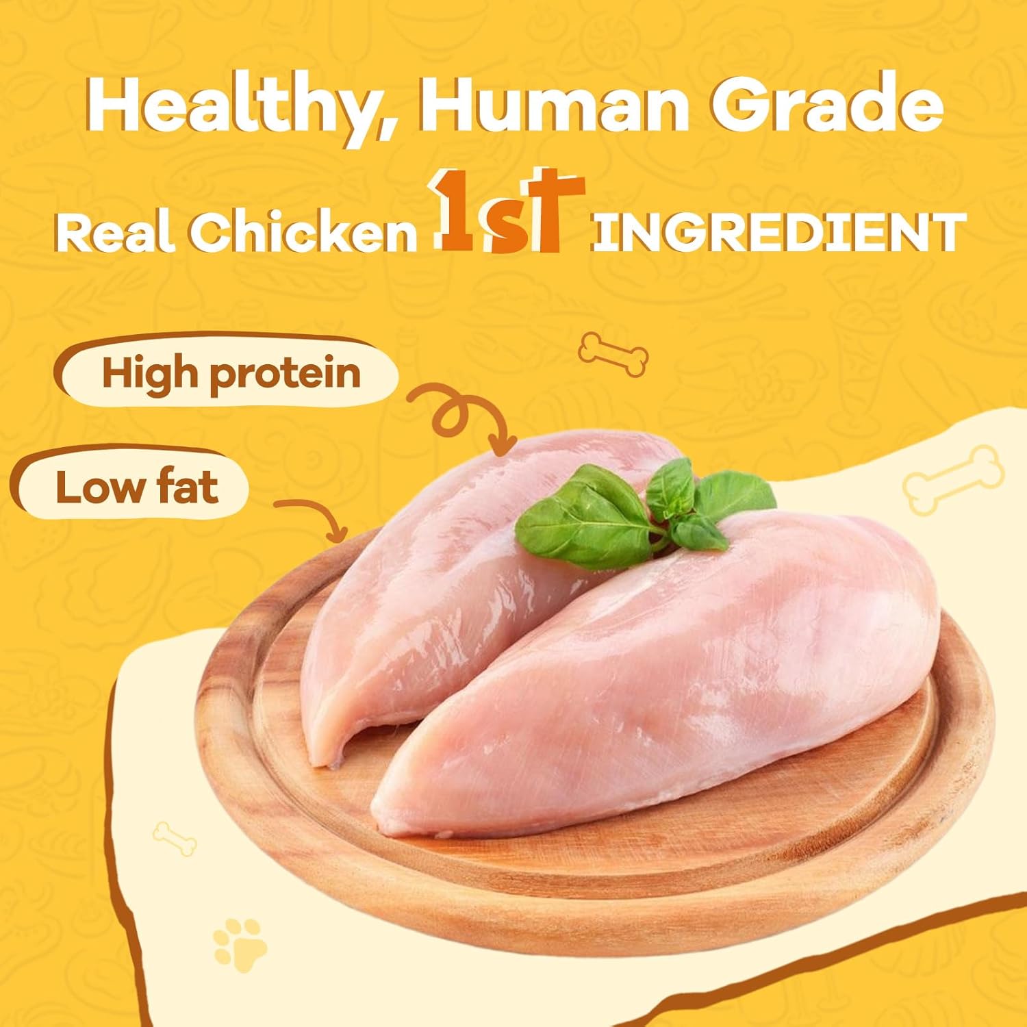 - 100% CHICKEN MEAT: The newly upgraded bag package has a larger capacity to meet all pet needs.These chicken jerky strip treats are entirely free from additives and preservatives, providing just the pure, natural goodness your pet loves. Made with gluten-free ingredients, they're a healthy dog snack choice