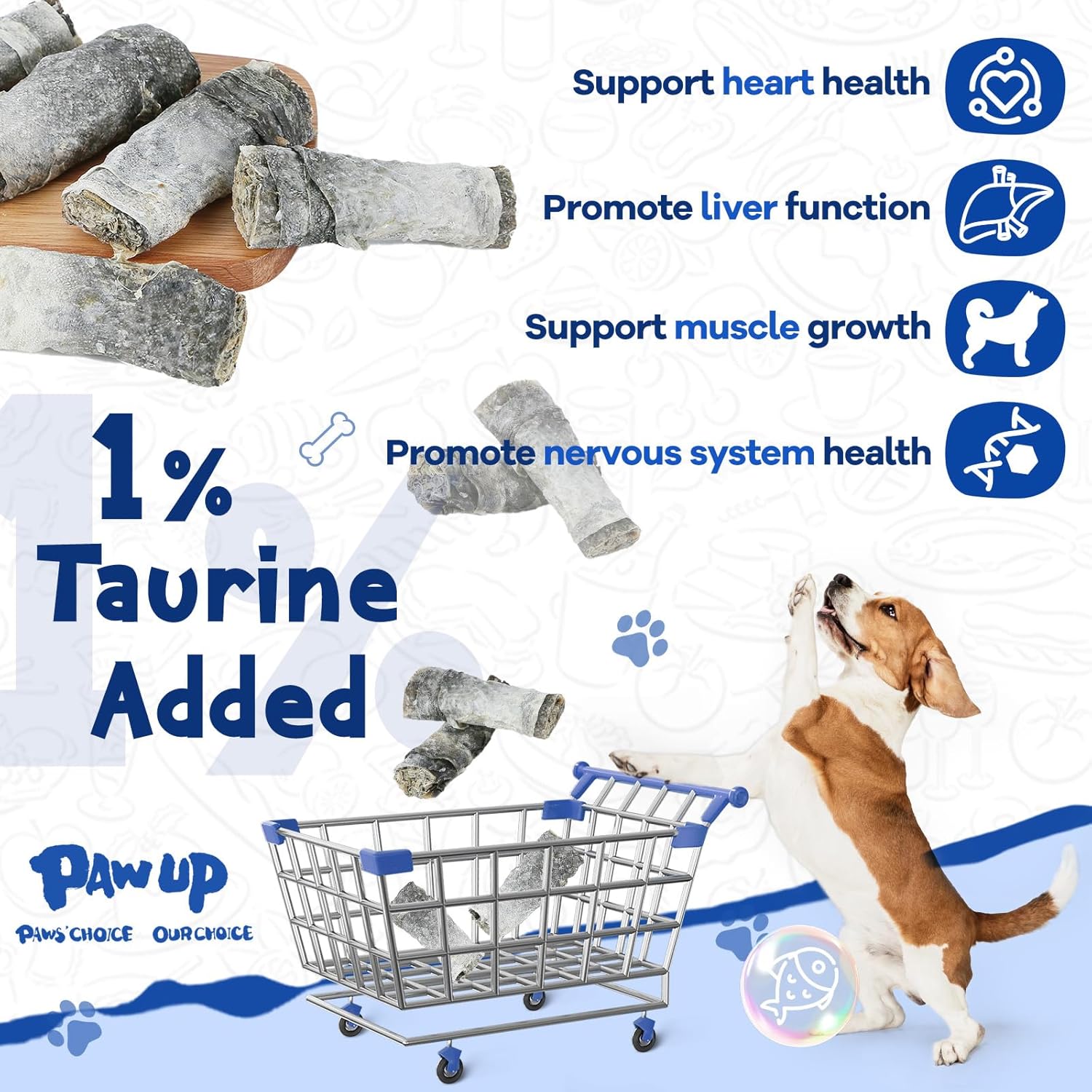 - TAURINE ADDITION: Taurine is an excellent nutrient for any age or breed. It has a very good effect on the heart, cerebrovascular, and retina of dogs. 1% taurine is added to treats, which can be directly supplemented in daily life