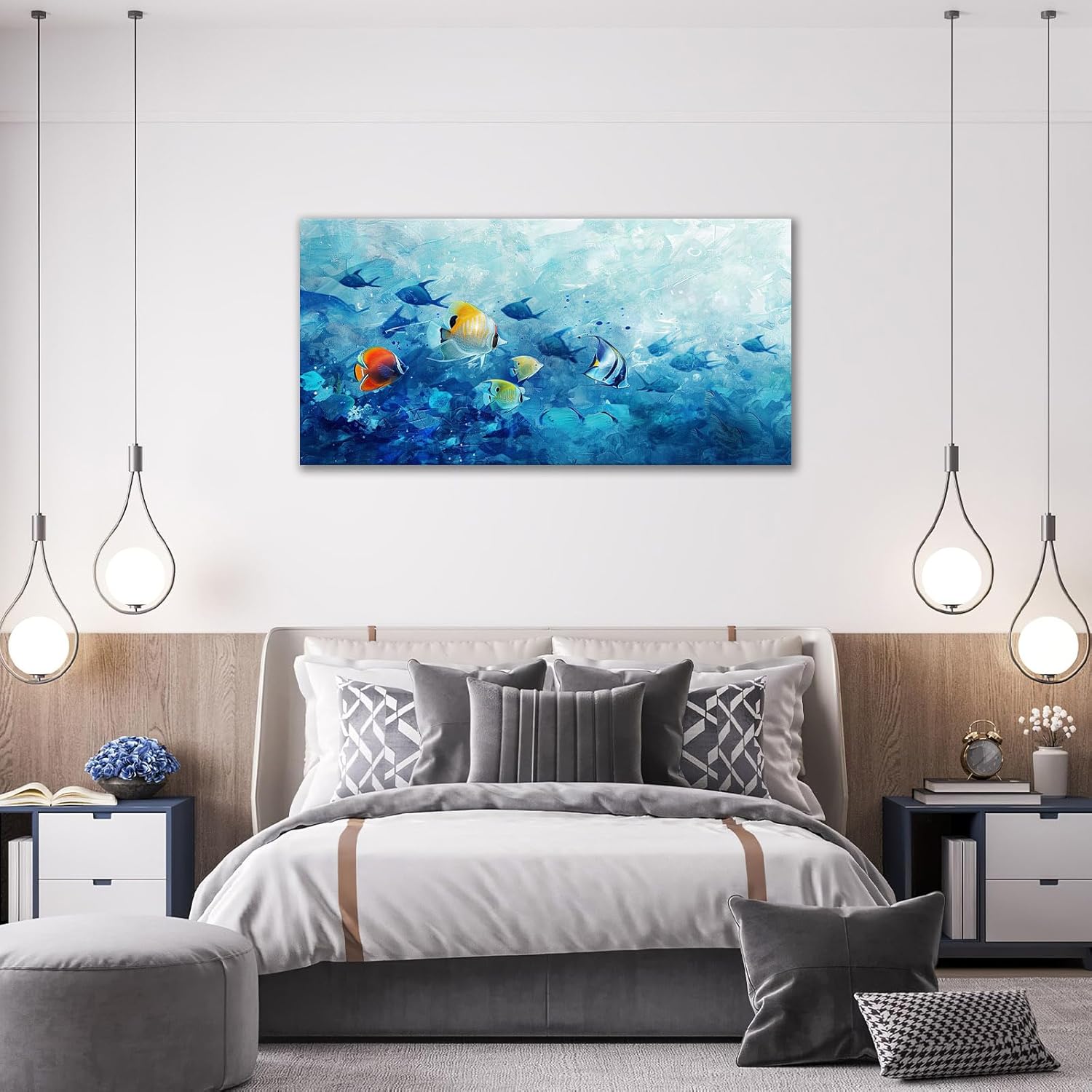Extra Large Wall Art Tropical Fish Canvas Living Room Pictures Framed Prints Ocean Blue Oversize Wall Decor Animal Painting Artwork for Bedroom Dining Office Home 60"x30"