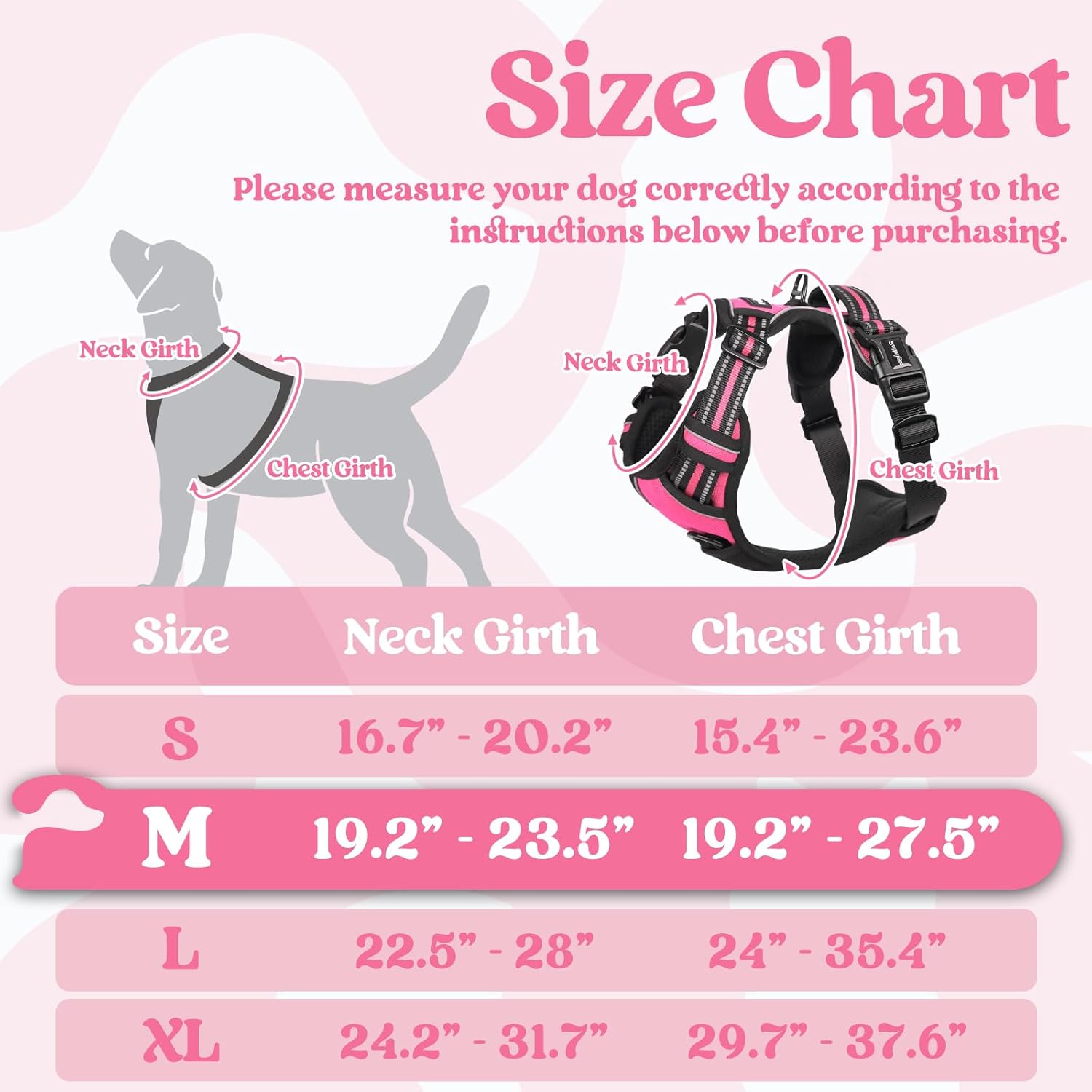 rabbitgoo Dog Harness Medium Sized, No Pull Pet Harness with 3 Buckles, Adjustable Soft Padded Vest with Control Handle, Walking Reflective Pet Vest for Medium Dogs, Rose Pink, M