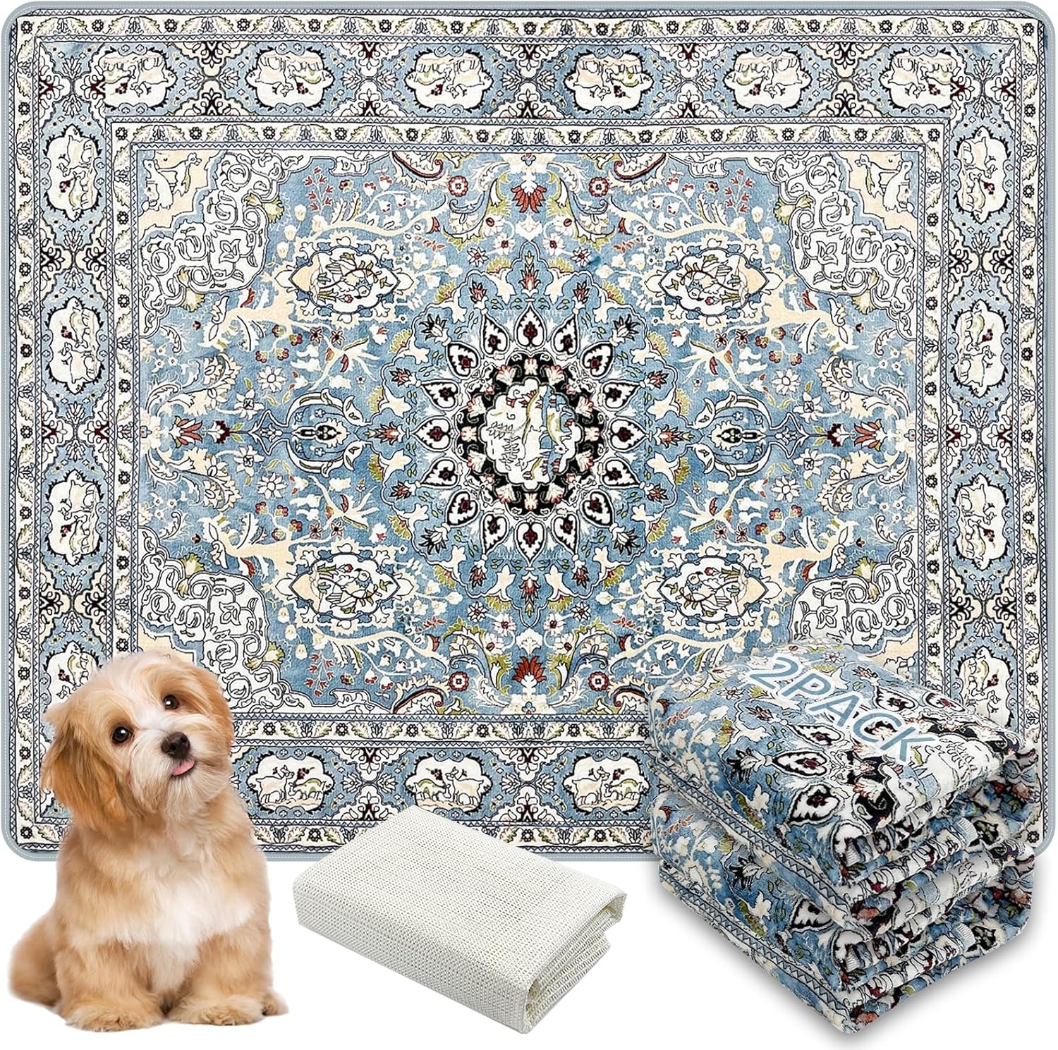 Washable Pee Pads for Dogs, (2 Pack, 36"x42") Upgrade Reusable Puppy Pads with Non-Slip Rug Pad, Super Thickening Absorbent Leakproof Dog Traning Pads Whelping Pad for Dogs, Doggie(Blue-2)