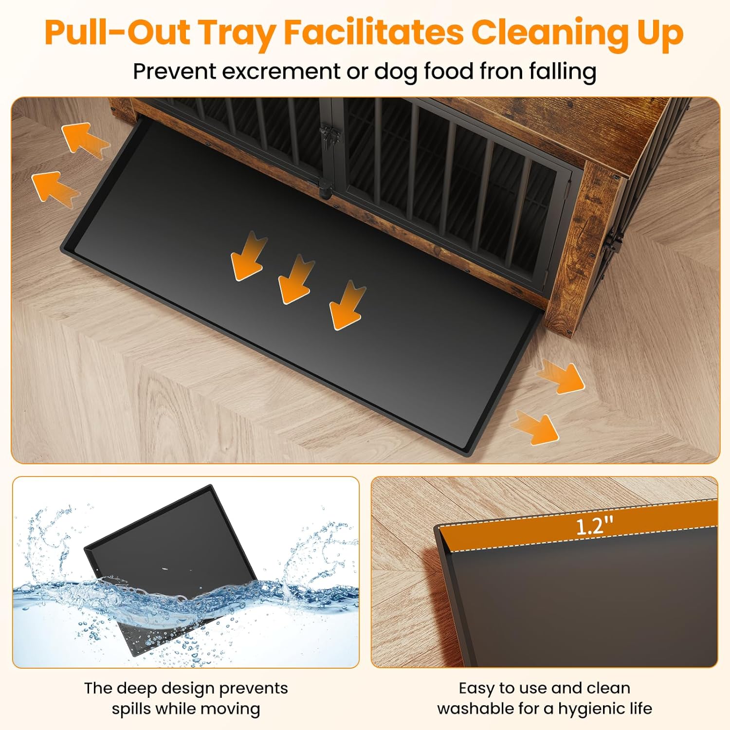 Dog Crate Furniture, Dog Crate End Table for Medium and Large Dogs,Wooden Cage Kennel Furniture Indoor, Modern Dog Crate with Multi-Purpose Removable Tray, Double-Doors Dog Furniture