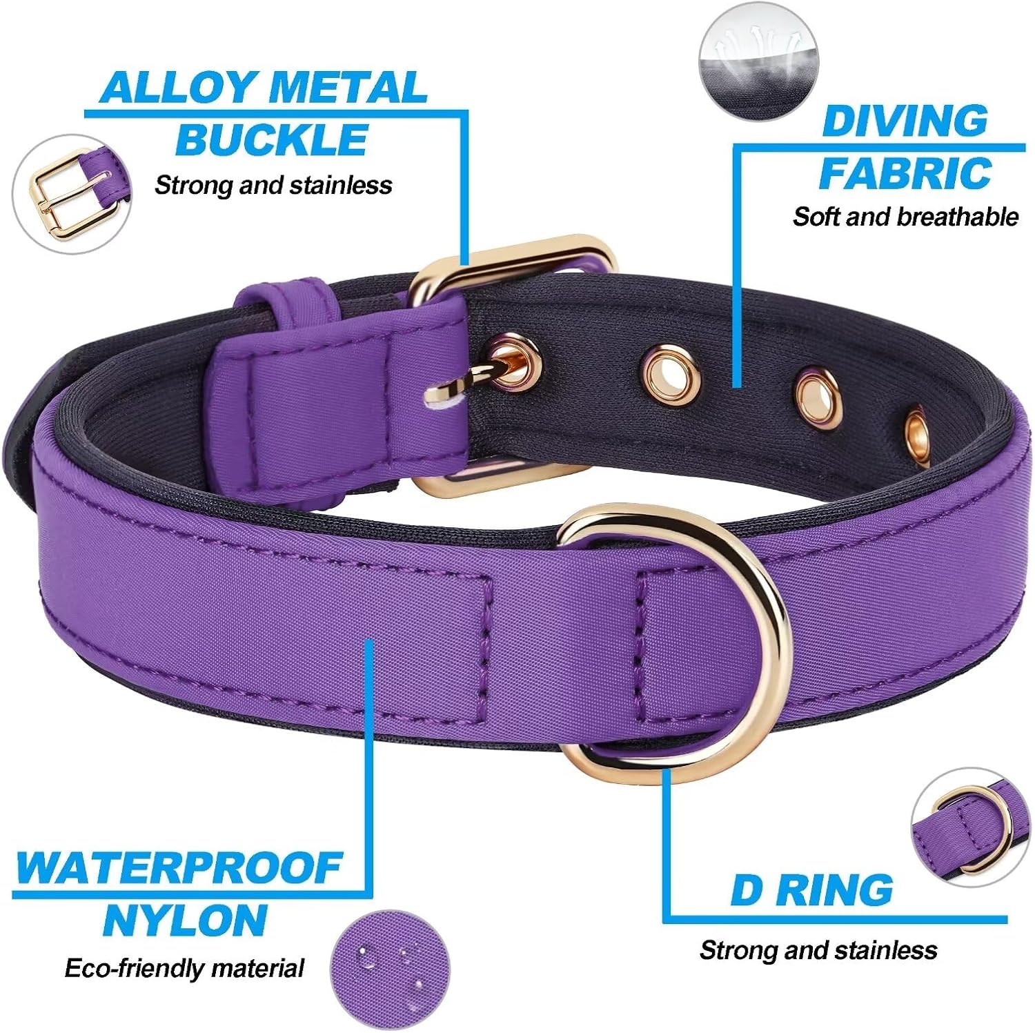 Didog Soft Padded Dog Collars for Small Dogs, Lightweight and Breathable Dog Collar with Metal Buckle for Puppy, Purple, S