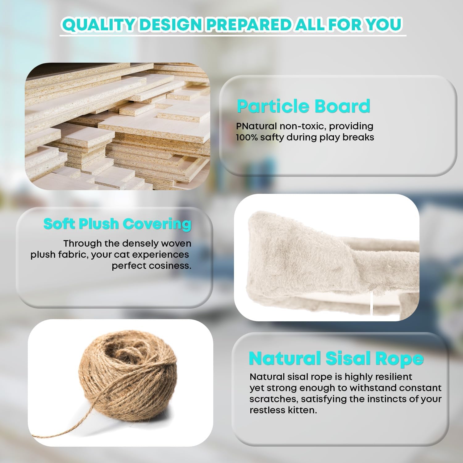 - Material : Particleboard, Plush, Sisal