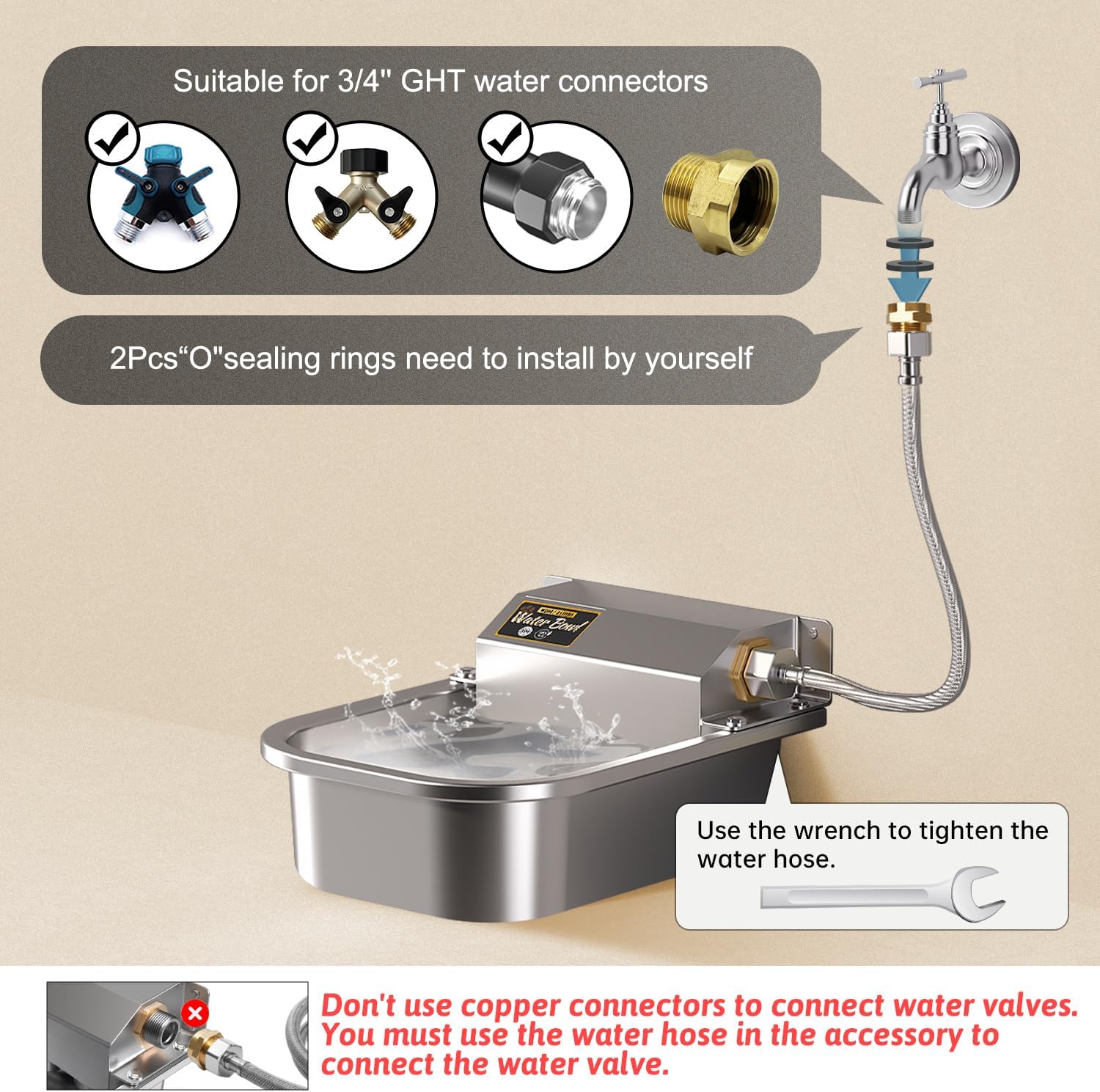 - Tips: The dog water dispenser is suitable for connecting to 3/4'' GHT faucet. Other sizes of faucet threads may be incompatible. If the copper fitting cannot cover more than half of the thread, it may cause leakage