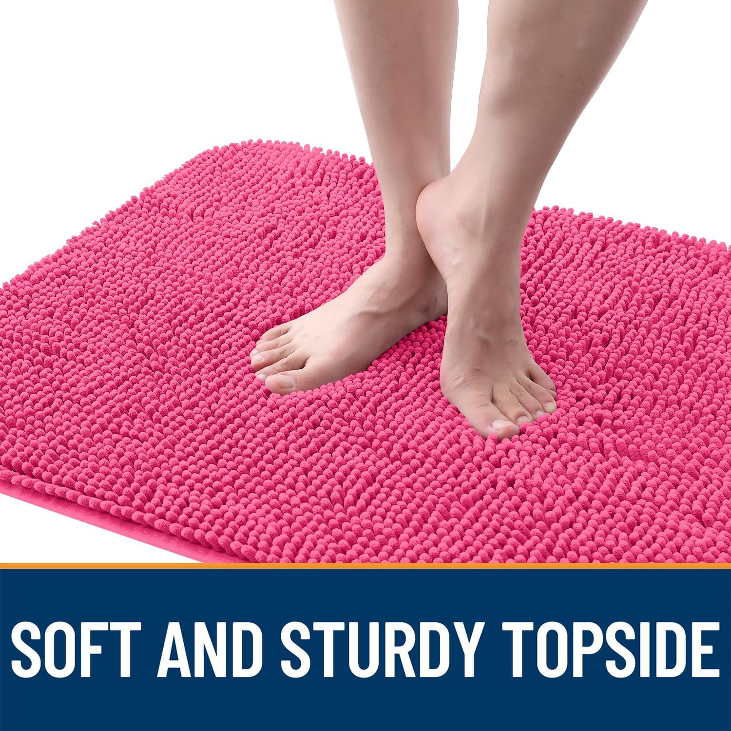 OLANLY Dog Door Mat for Muddy Paws 59x24, Absorbs Moisture and Dirt, Absorbent Non-Slip Washable Doormat, Quick Dry Chenille Mud Mat for Dogs, Entry Indoor Entryway Carpet for Inside Floor, Hot Pink