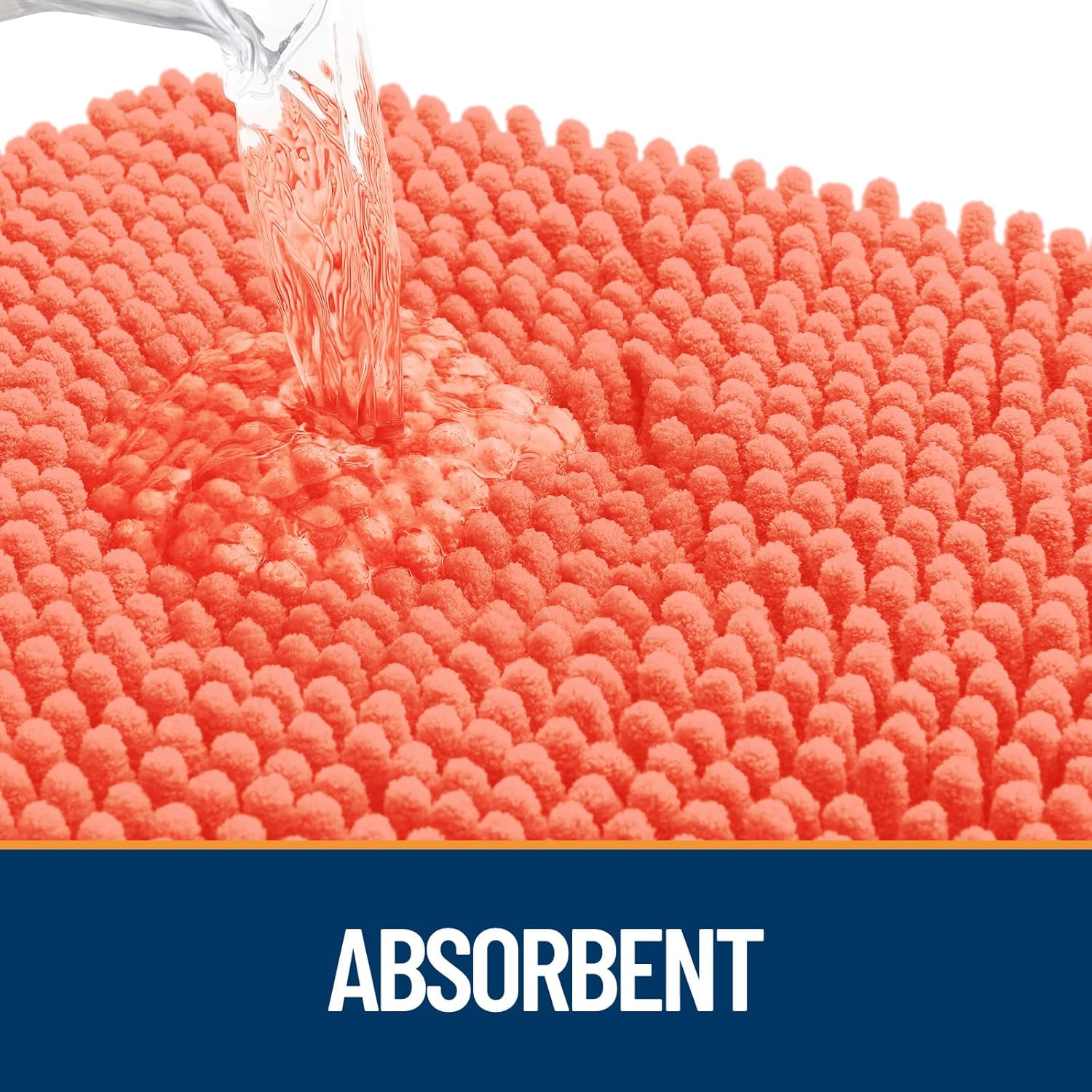 OLANLY Dog Door Mat for Muddy Paws 30x20, Absorbs Moisture and Dirt, Absorbent Non-Slip Washable Doormat, Quick Dry Chenille Mud Mat for Dogs, Entry Indoor Entryway Carpet for Inside Floor, Coral