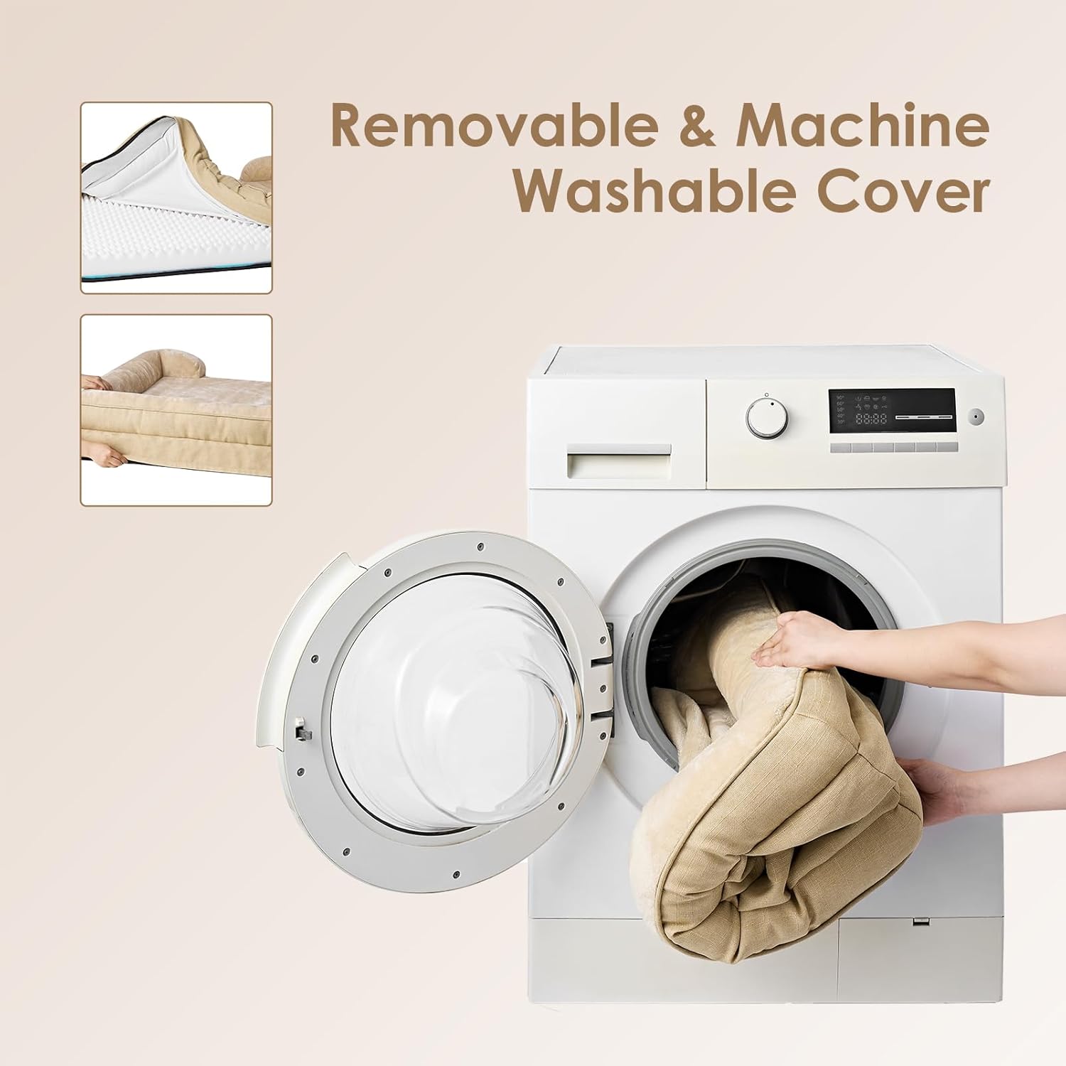- CARE INSTRUCTIONS: Our dog bed features a removable and washable cover with a zipper closure, making it easy to clean. Remove the foam insert, and the cover can be washed in a machine. Please note that the foam insert is not washable. Allow the bed to expand for 24-48 hours after unpacking.