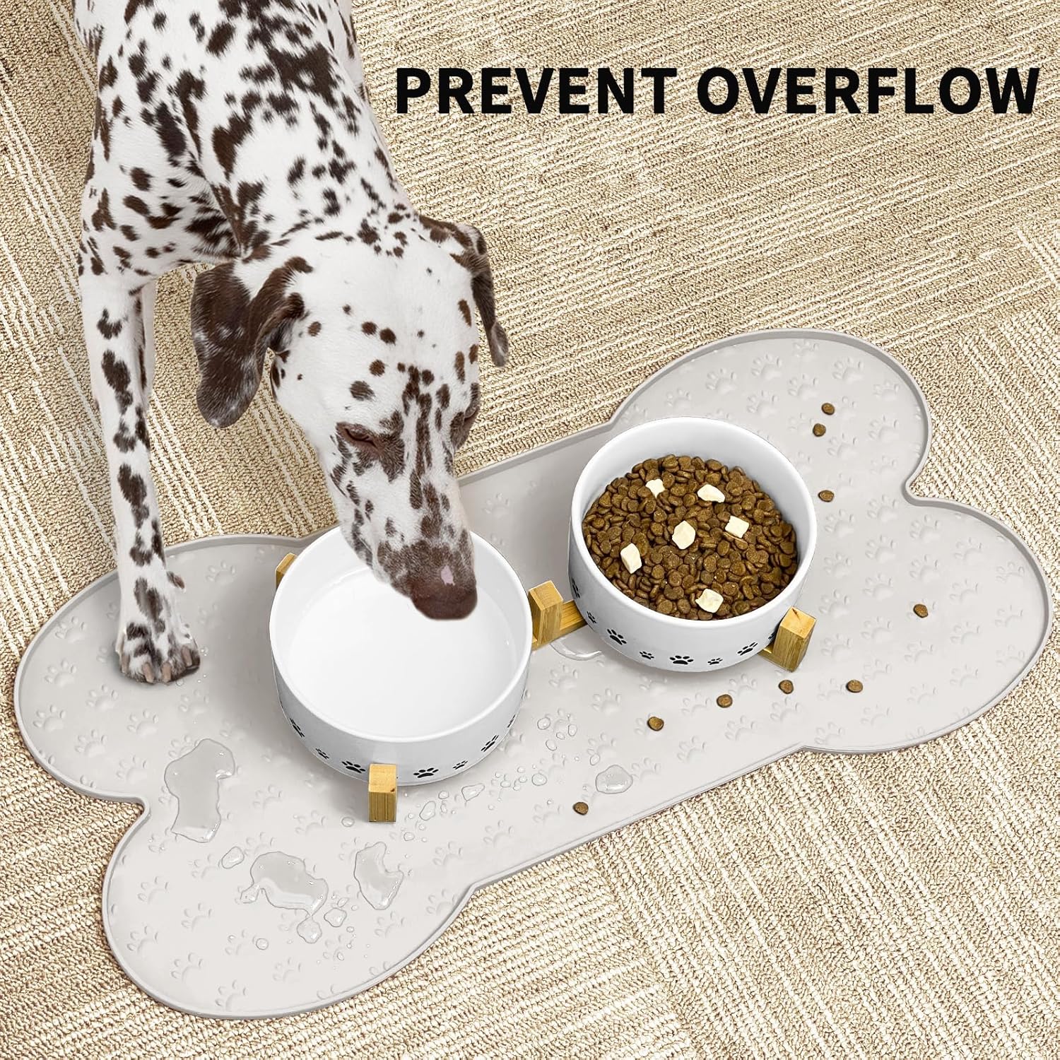 - Health Silicone Material - This pet bowl mat is non-toxic, and non-allergenic, protecting the health and safety of your pet's feeding. 25.6" x 13" holds two regular big bowls, perfect for medium to large-sized dogs and cats to enjoy a delicious meal tray.