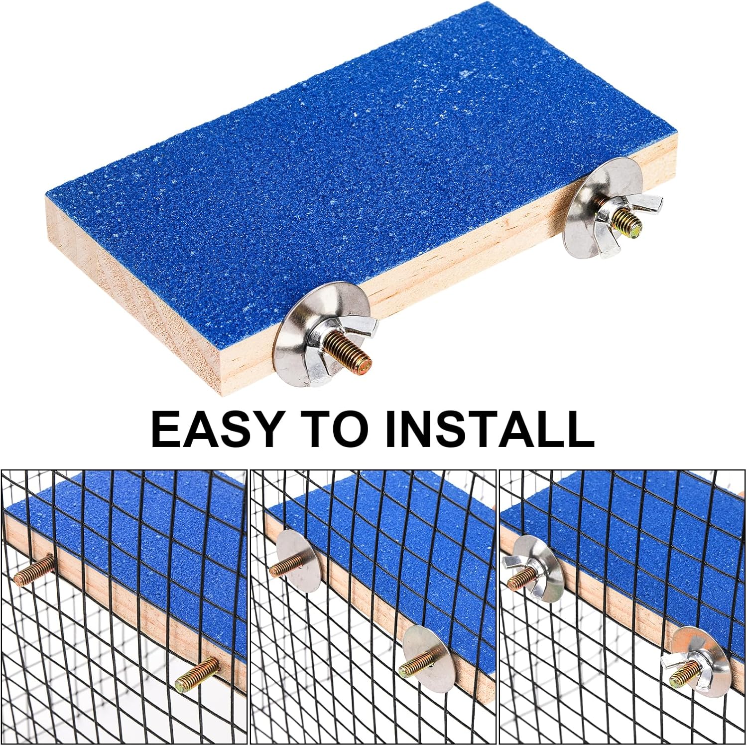 - The package comes in 8 pcs parakeet toys, including 4 pcs paw grinding sticks and 4 pcs bird perch stand platform. The sticks measure 5.9”x0.6” and the boards are 5.9”x3.1”. There are 4 beautiful colors, green, orange, pink, and blue, perfect to decorate your bird's cage.