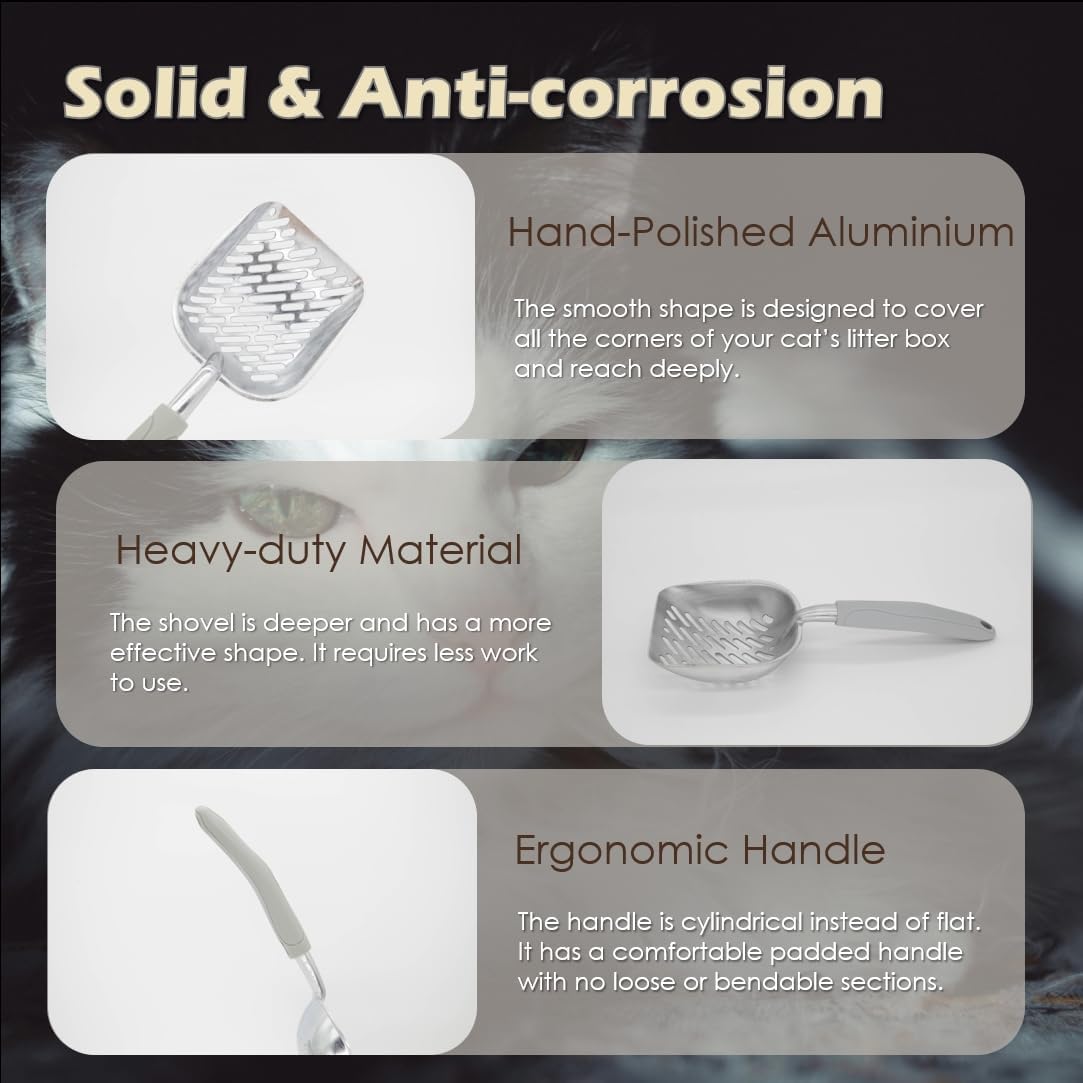 - FAST SIFTING & CLEAN FLOOR - The optimal spacing of the scooper ensures a minimal shaking that allows more usable cat litter to pass through. The scoop holder keeps your floor tidy from unwanted messes and dust dropping from litter scooper