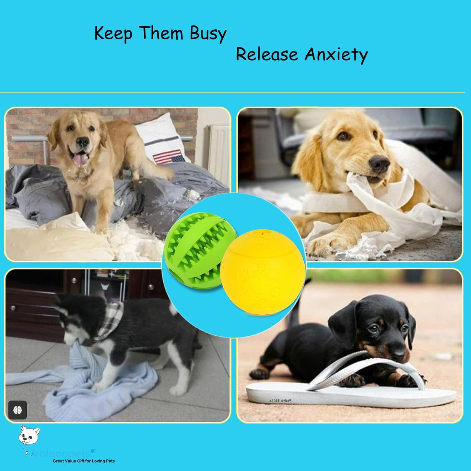 - 【Interactive Dog Toy】 This set includes treat and dental balls designed for indoor and outdoor play, providing mental stimulation and dental care. Volacopets treat-dispensing dog ball is crafted from high-quality, tough rubber that offers excellent elasticity. It's perfect for grinding and cleaning your dog's teeth, making it suitable for small to large breeds.