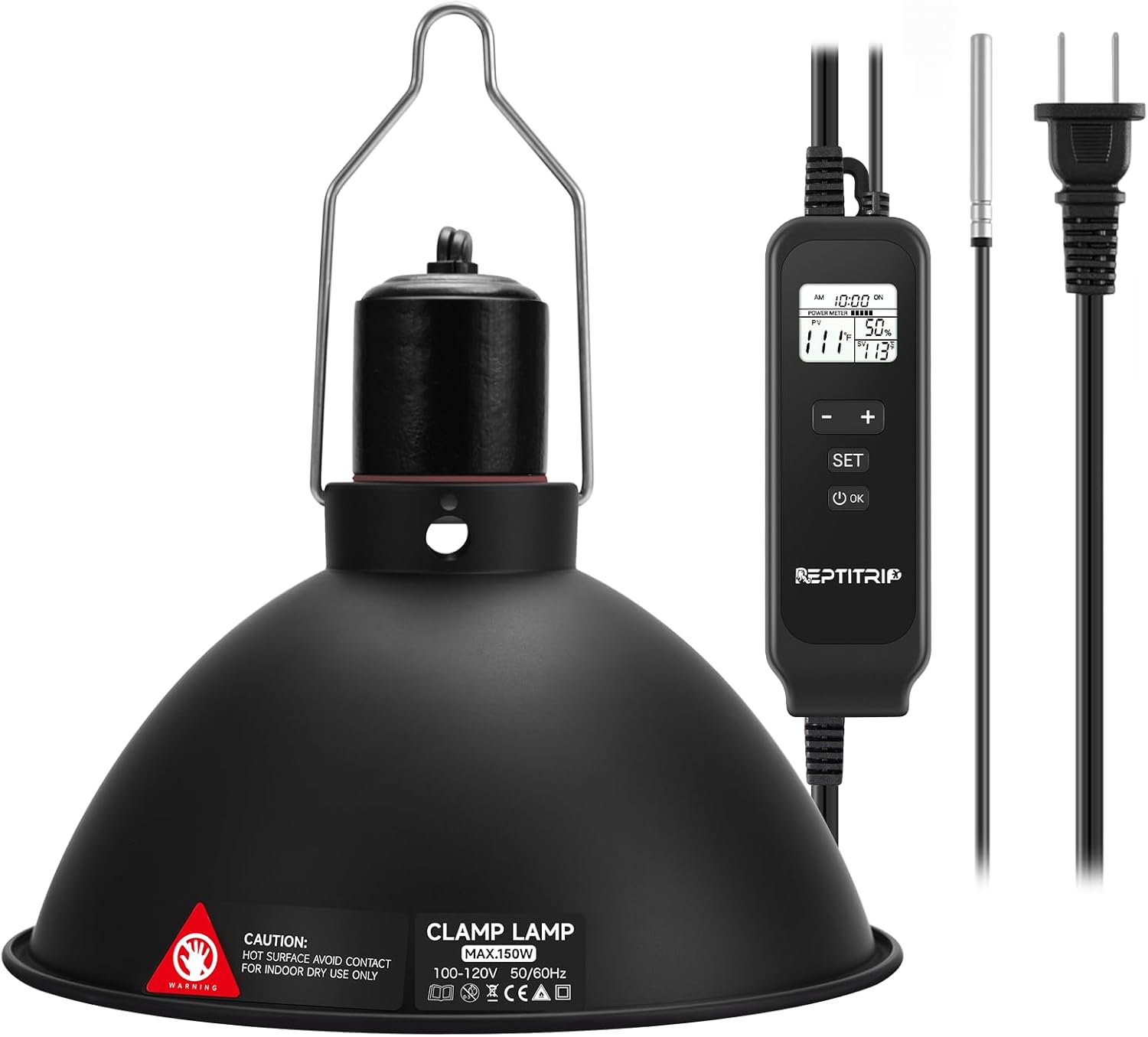 - Safe and Reliable: The temperature controller features a high-precision sensor that detects real-time temperature and makes adjustments, ensuring the reptile heat lamp stays at the set temperature. The thermostat control range is 68°F to 113°F (20°C to 45°C)