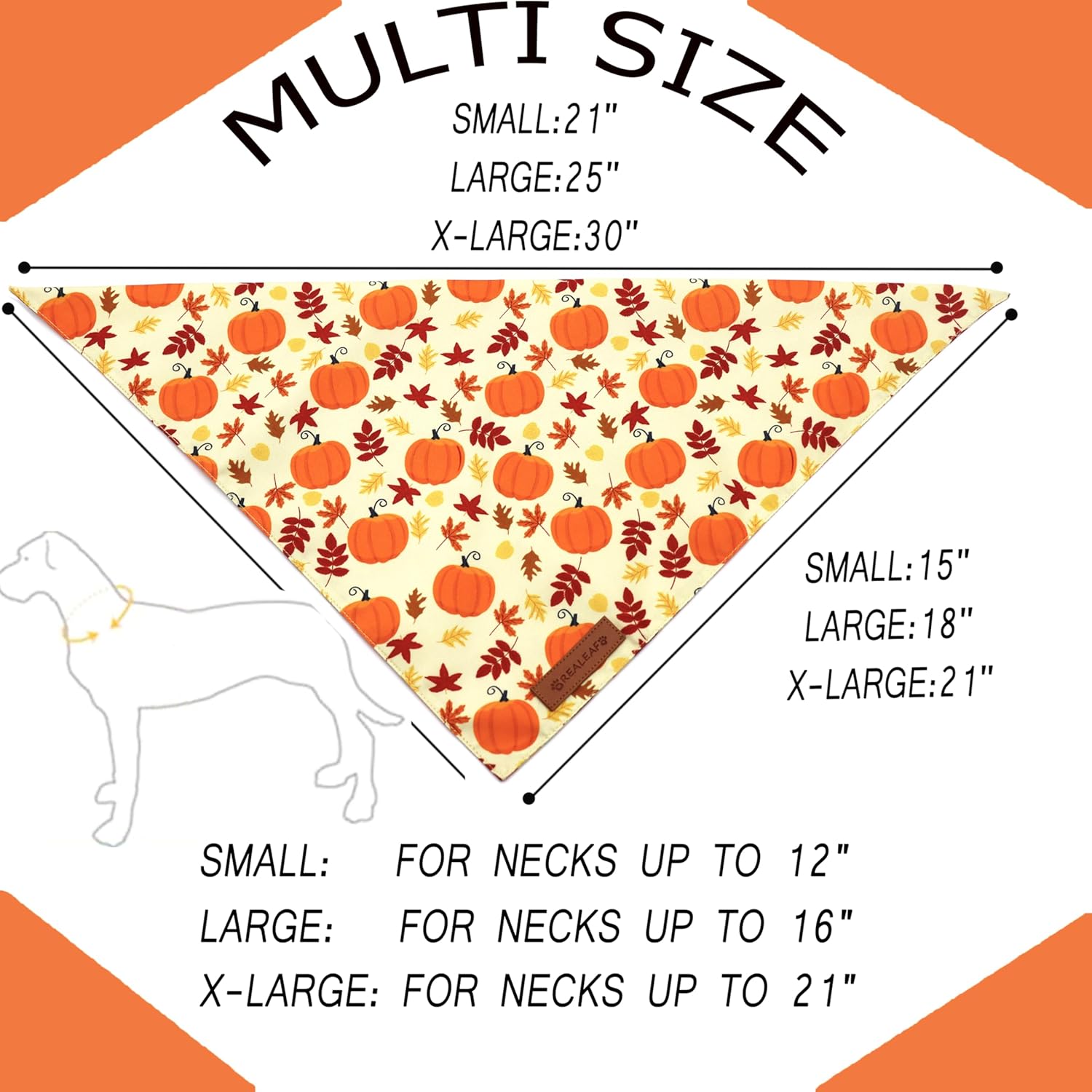Realeaf Thanksgiving Dog Bandanas 2 Pack, Pumpkins and Happy Thanksgiving Pet Scarf for Boy and Girl, Premium Durable Fabric, Reversible Holiday Bandana for Large and X-Large Dogs Pets (X-Large)