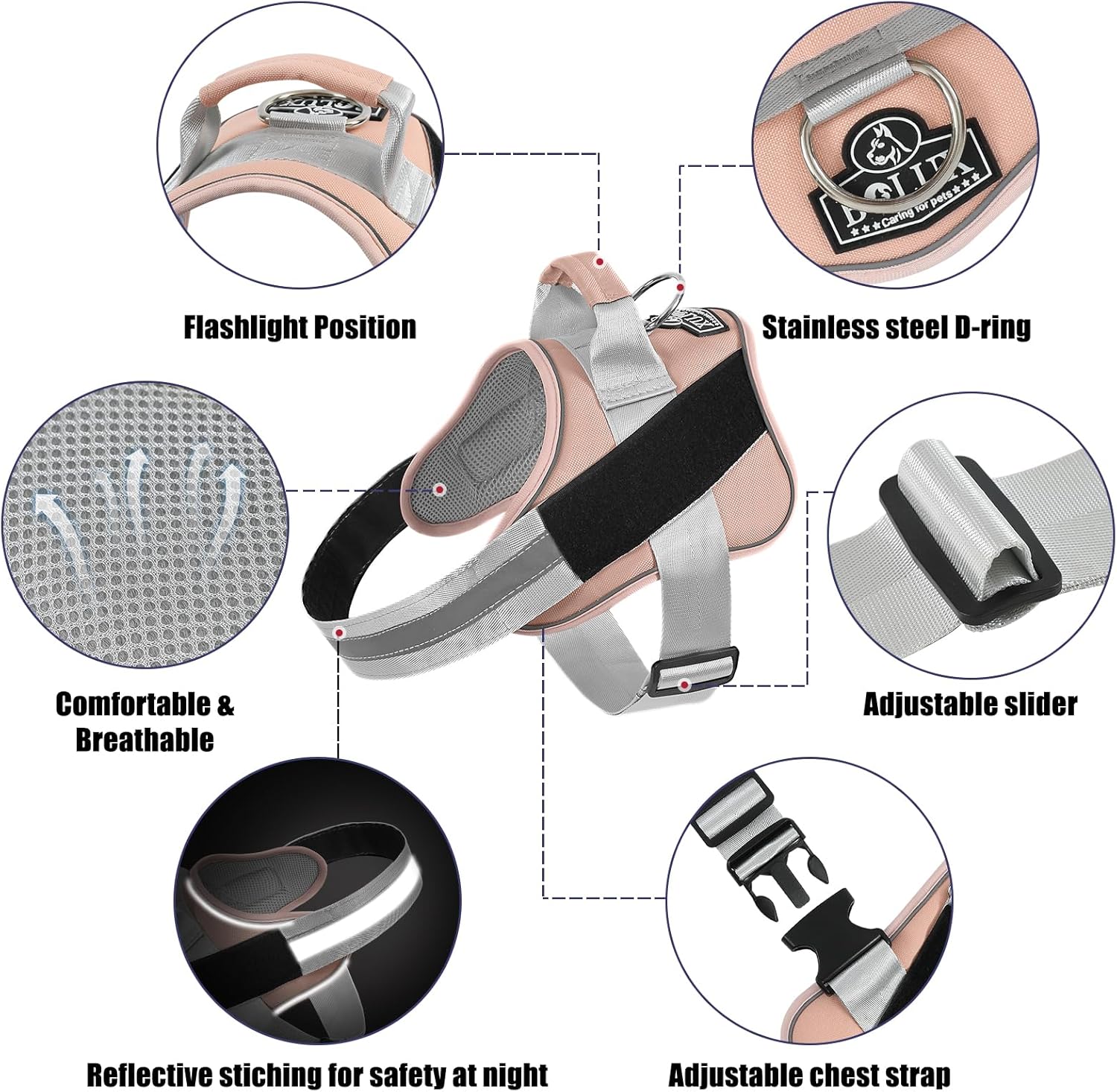 - STURDY HANDLE: The adjustable dog harness with rugged nylon handle further enhances your distance from the dog and is more intimate with each other. Easy on dog harness is also the best partner for dogs and is easy to control your dog.