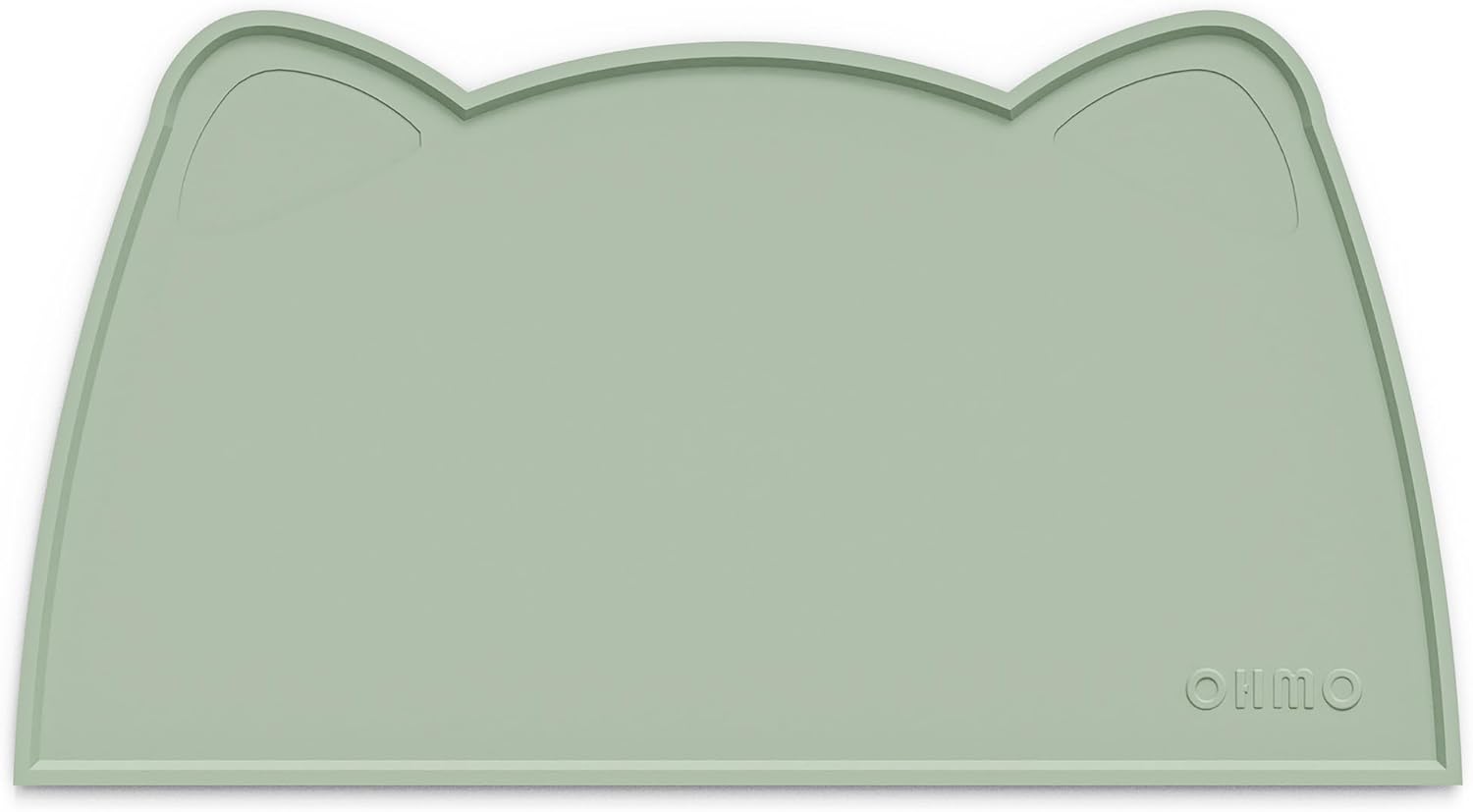 OHMO - Cat Food Mat, Silicone Pet Feeding Mat for Floor Non-Skid Waterproof Dog Water Bowl Tray, Easy to Clean Pet Placemat (Sage Green, 18 * 9.8'')