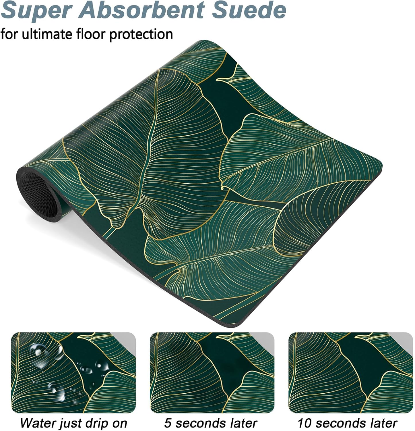 - Super Absorbent Placemat: Aesthetic dog food mat surface is made of absorbent suede with soft, anti-fray which can quickly absorb liquid and wet food stains to prevent prevents food & water from spilling onto floor