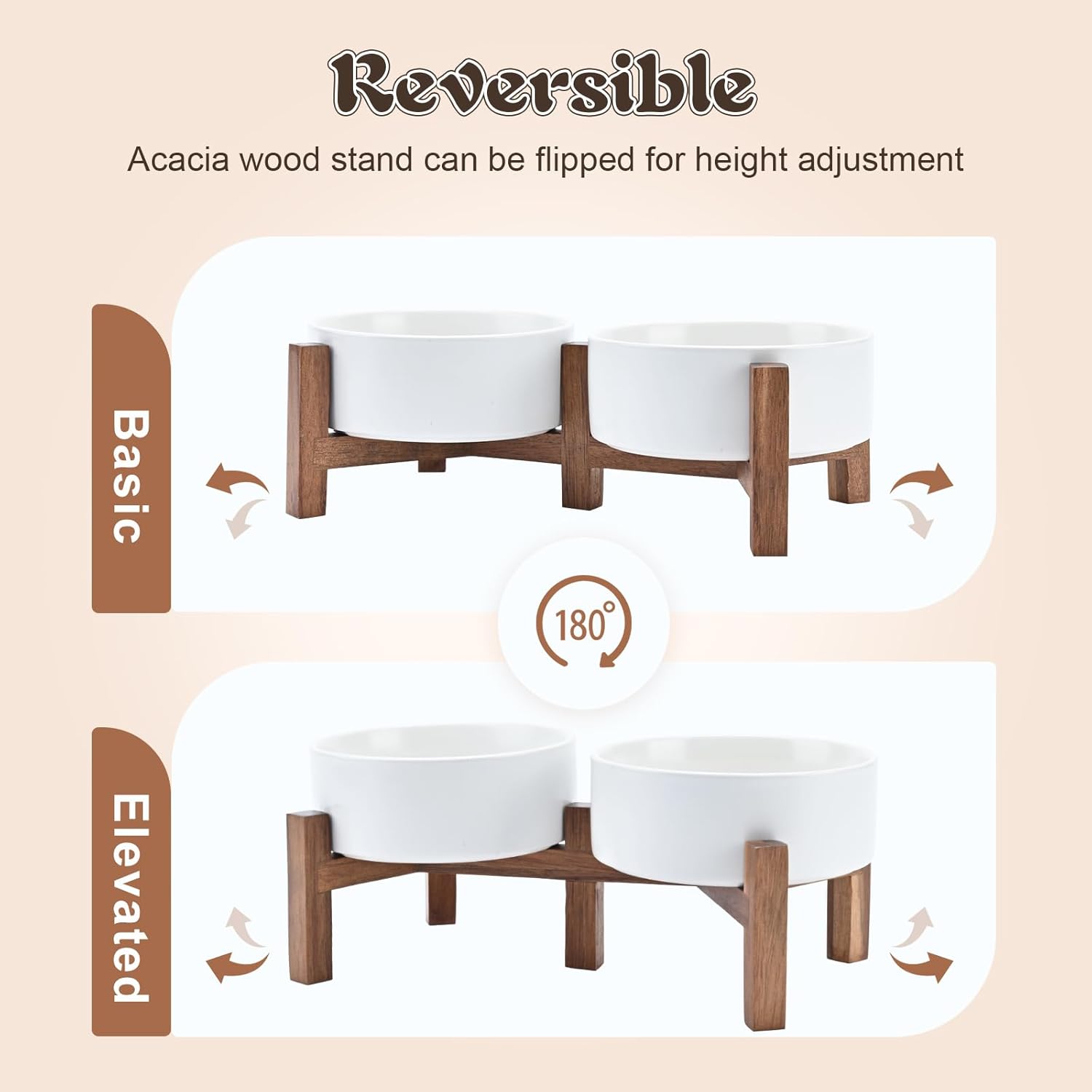 - FORMER AND REVERSE DUAL USE DESIGN: The unique reversible design allows this bowl to have two different height settings to meet different pets' eating habits and comfort levels. The height adjustment helps pets maintain a proper eating position, improves eating comfort and reduces neck and spine stress