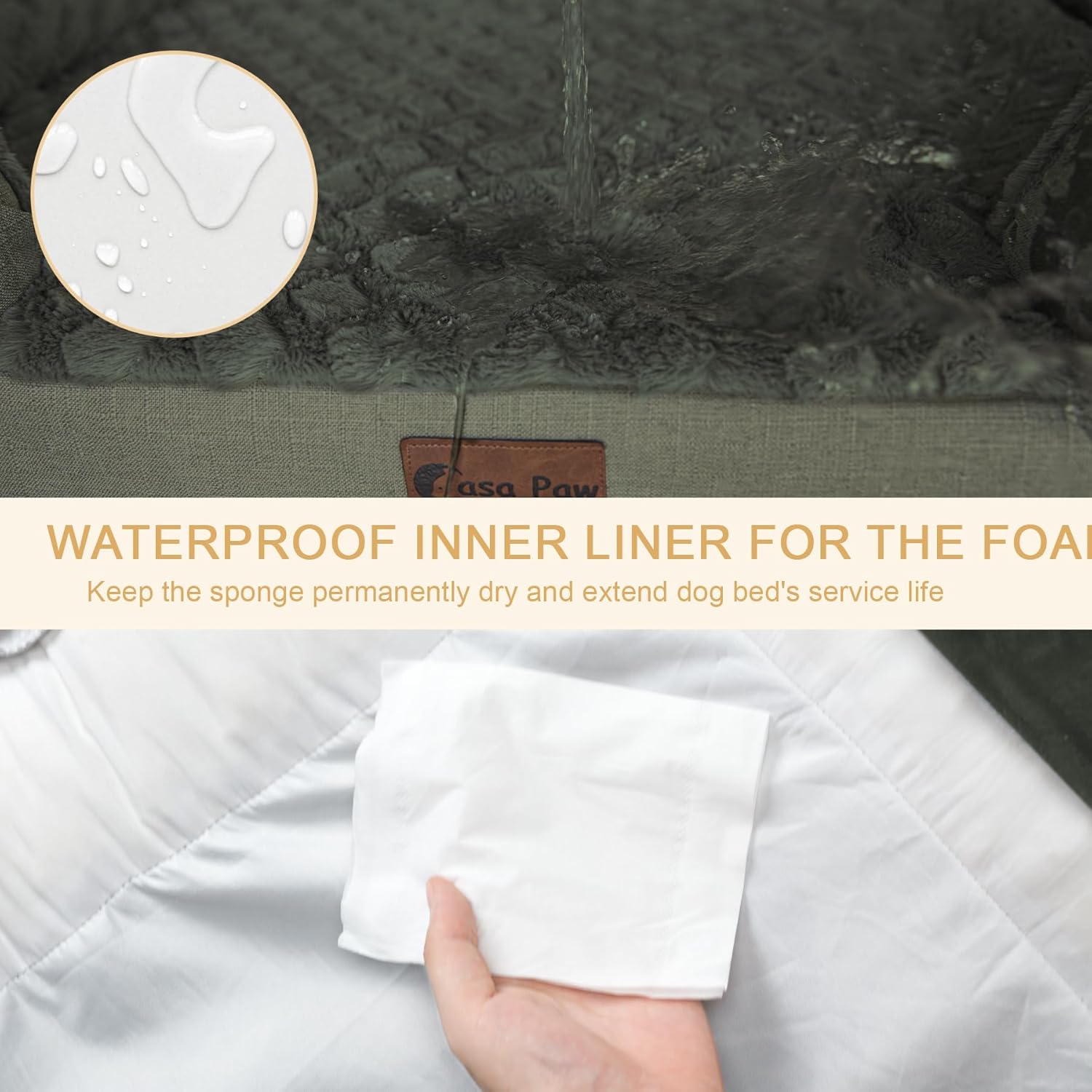 - WATERPROOF & EASY CARE: The middle waterproof layer between plush velvet surface and bottom fabric prevents urine penetration, keeping the memory foam dry and free from mold. The cover of the washable dog bed can be easily removed or combined through the tear-resistant zipper. Only the out cover supports machine washing and low-temperature drying, please take the foam and bolsters out and wash the cover individually.
