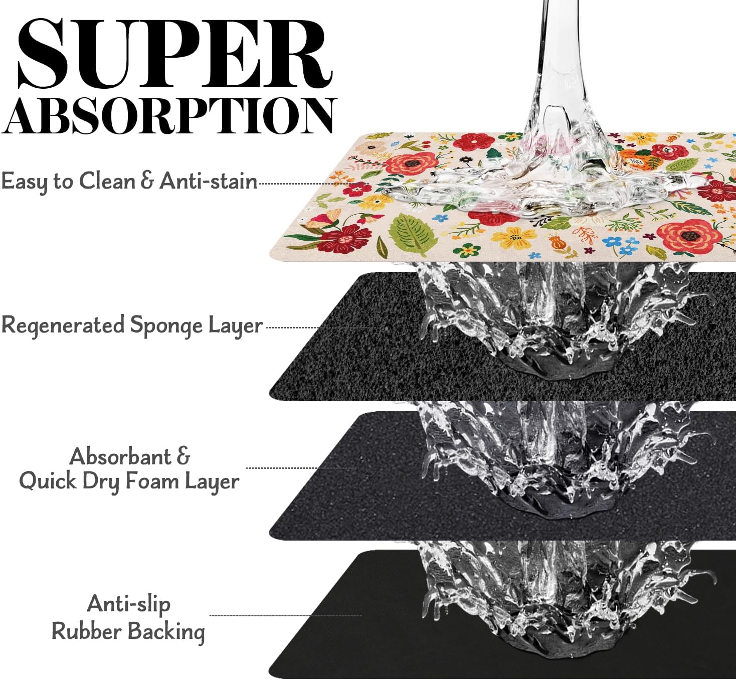 - Super Absorption: The diatomaceous earth dog mat for water bowl can absorb spilled water without leaving traces and dry quick, avoid wetting pet paws even for messy drinkers. And it does not attract pet hair like traditional silicone dog bowl mat.
