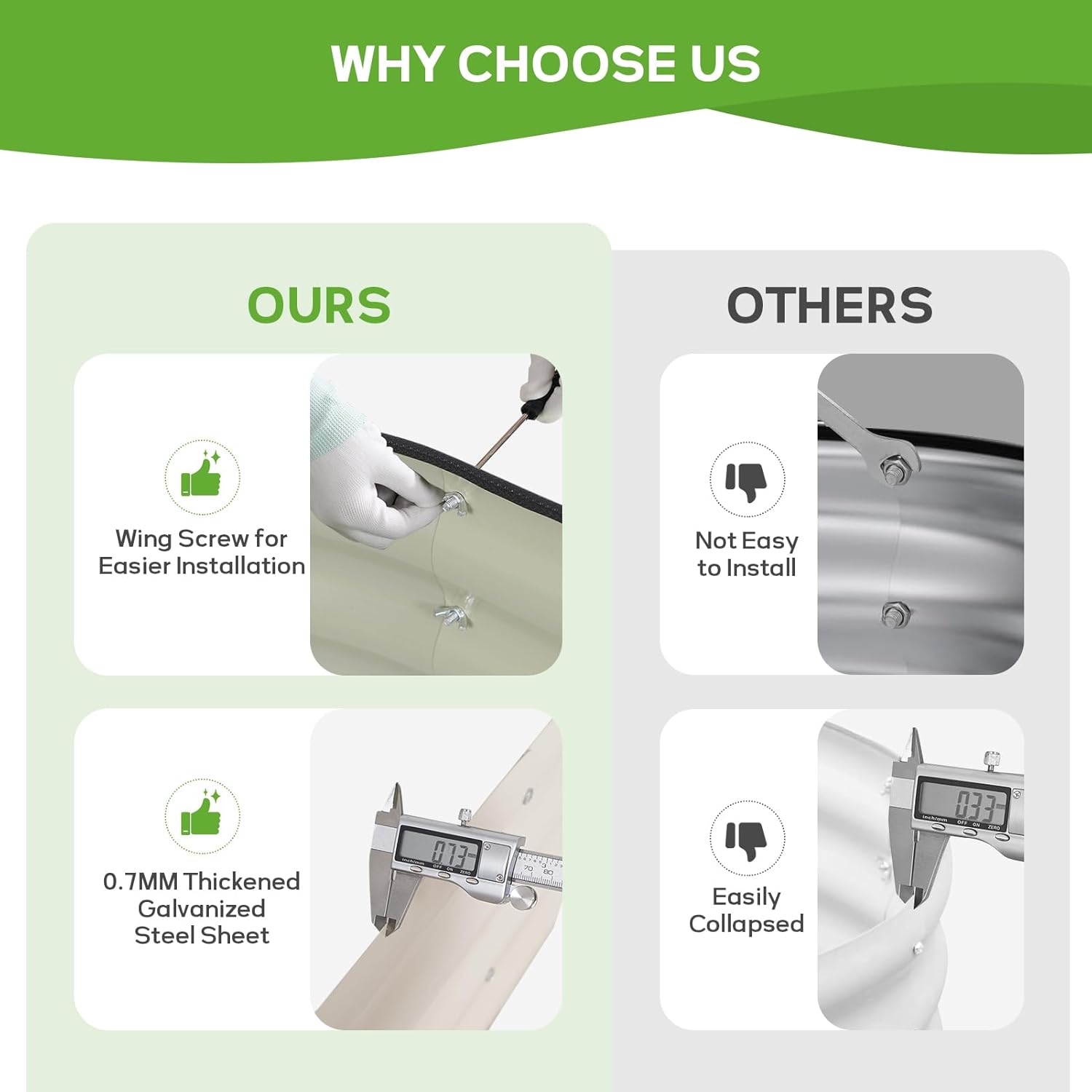 - 【 Easy Assembly 】Our metal raised garden bed is simple and easy to install. According to the detailed instructions and installation tools we provide, you can easily assemble your garden box and start planting with just a few simple steps and little time.
