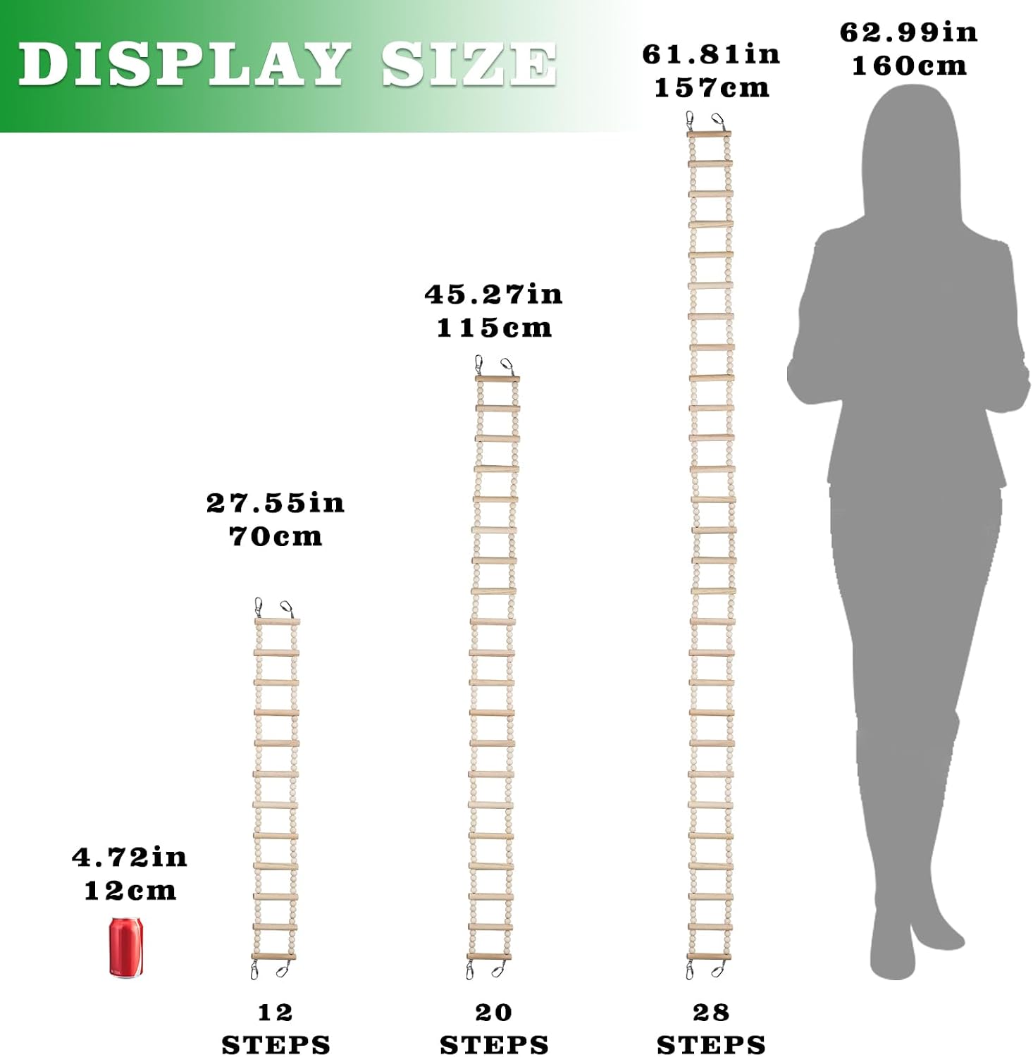 - 【Great for Small Pets】: Perfect for a range of small to medium-sized birds like african greys, budgies, cockatiels, lovebirds, conures, quakers and parrotlets. It’s also ideal for small animals like rats, sugar gliders, squirrels, and even snakes. This versatile ladder promotes natural climbing instincts, helping keep your pets active and content.