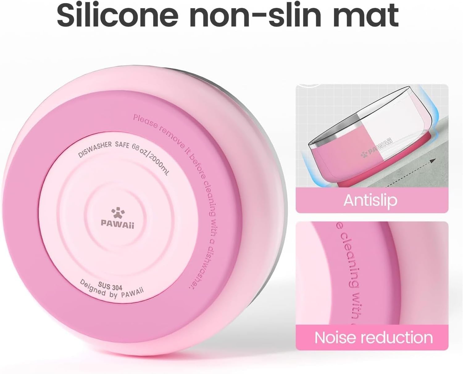 Pawaii Insulated Stainless Steel Dog Bowl with Non-Slip Base & Double Wall Design, ID Tag Included - 68oz Durable Dishwasher Safe Bowl for All Dogs