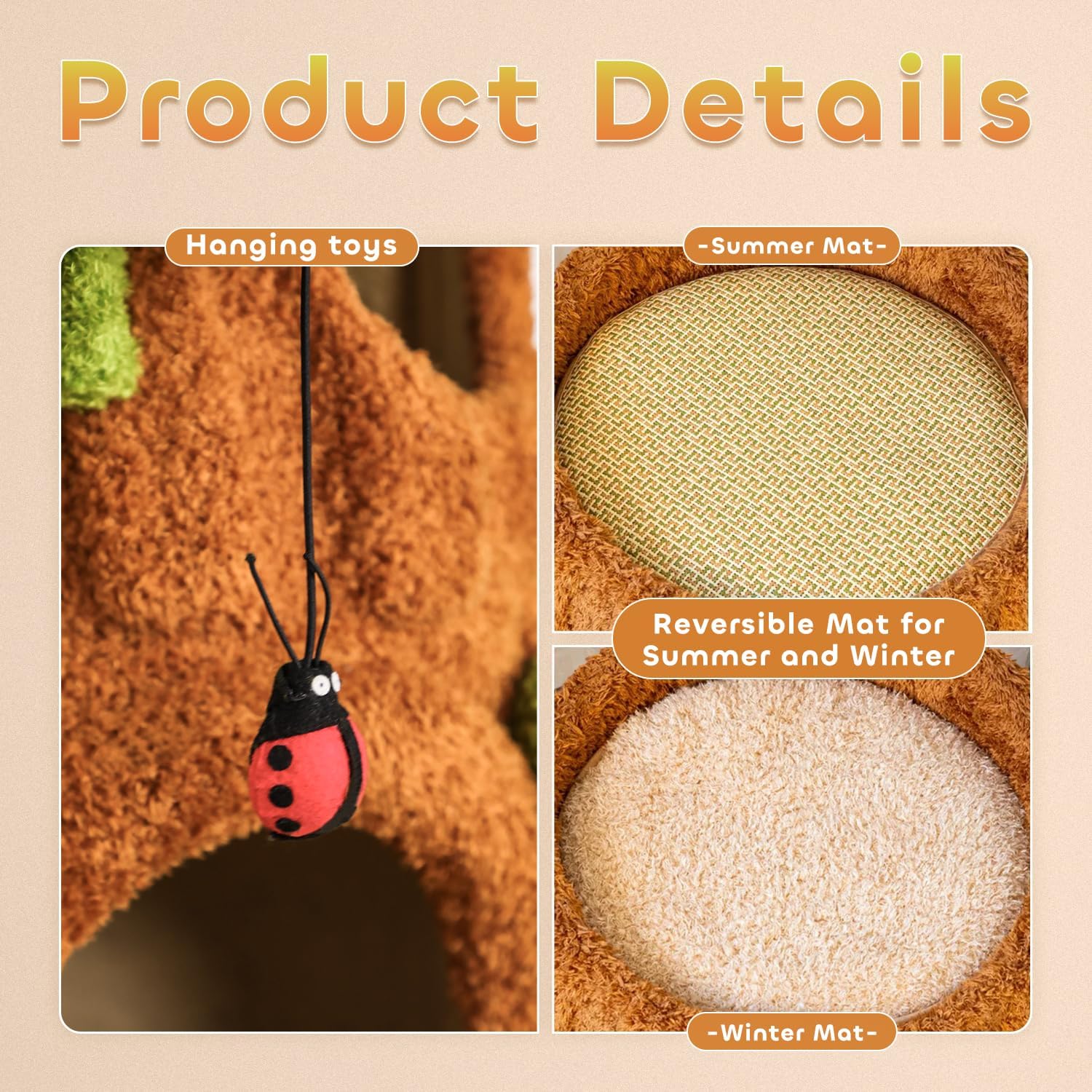 - 【Sisal Scratching Pads】Equipped with natural sisal scratching posts, the back of the cat tower is perfect for your cat’s scratching needs. The sisal material encourages healthy claw maintenance while allowing your cats to indulge in their natural instincts without damaging your furniture.