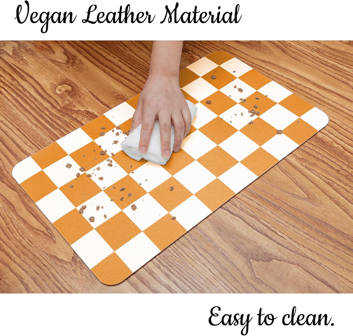 Ralxion Checkered Dog Feeding Mat, Absorbent Mats for Dog Food and Water Bowl, Dispenser, Aesthetic Orange Checkerboard Pet Placemat for Dogs, Cats, Puppy Accessories (Orange, 12 x 19)