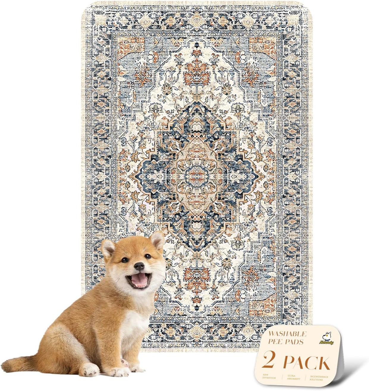 nunubaby Washable Pee Pads for Dogs, Stylish, Non-Slip and Leak-Proof Pee Pads. Reusable Potty Pads for Dogs for Crates and Floors.(Beige/Multi, 24" x36" )